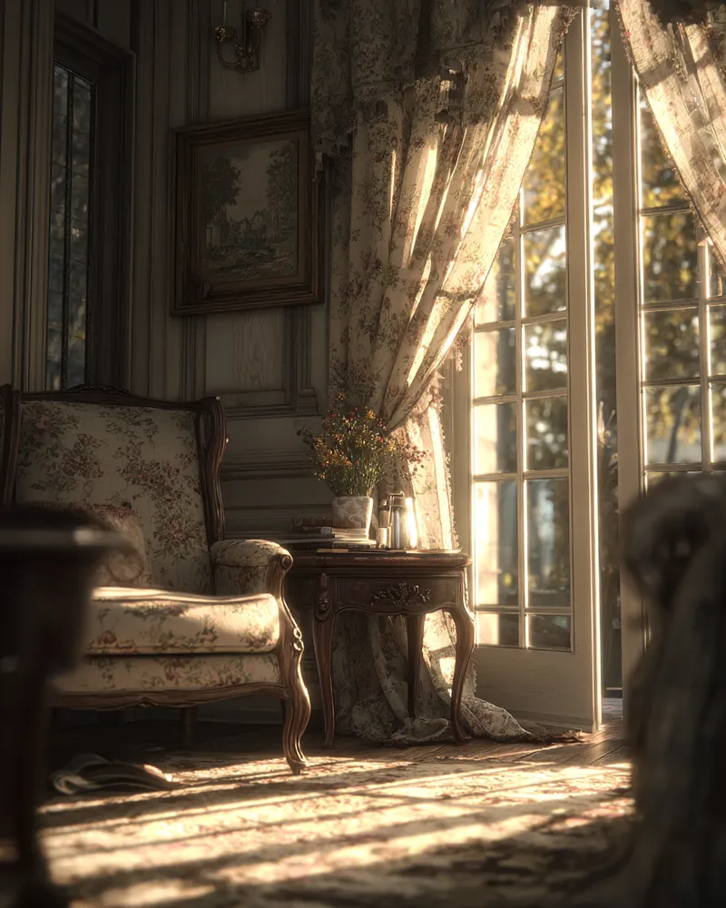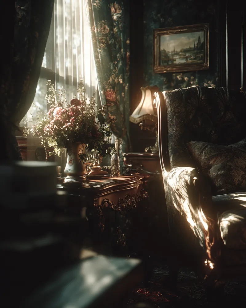 * **Soft Lighting:** A brass desk lamp or elegant pendant light for a warm glow.