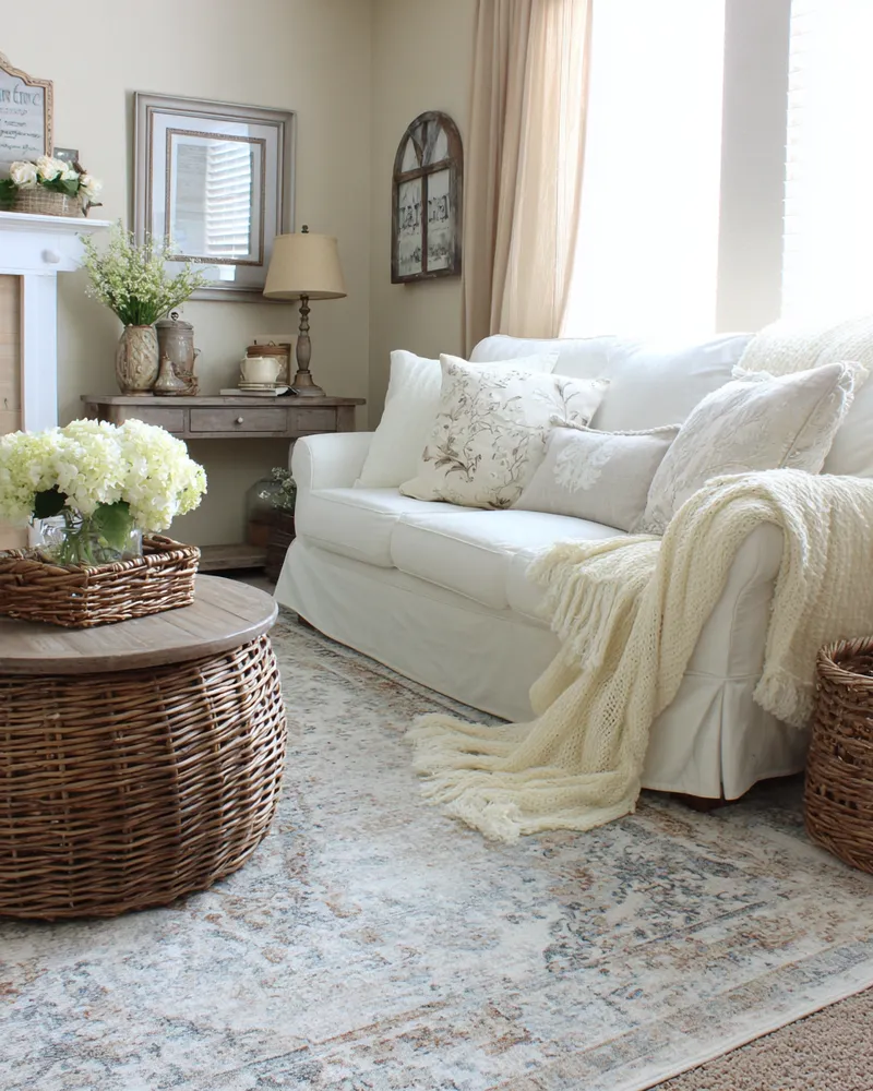 * **Organized Elegance:** Wicker baskets or decorative trays for stylish storage.