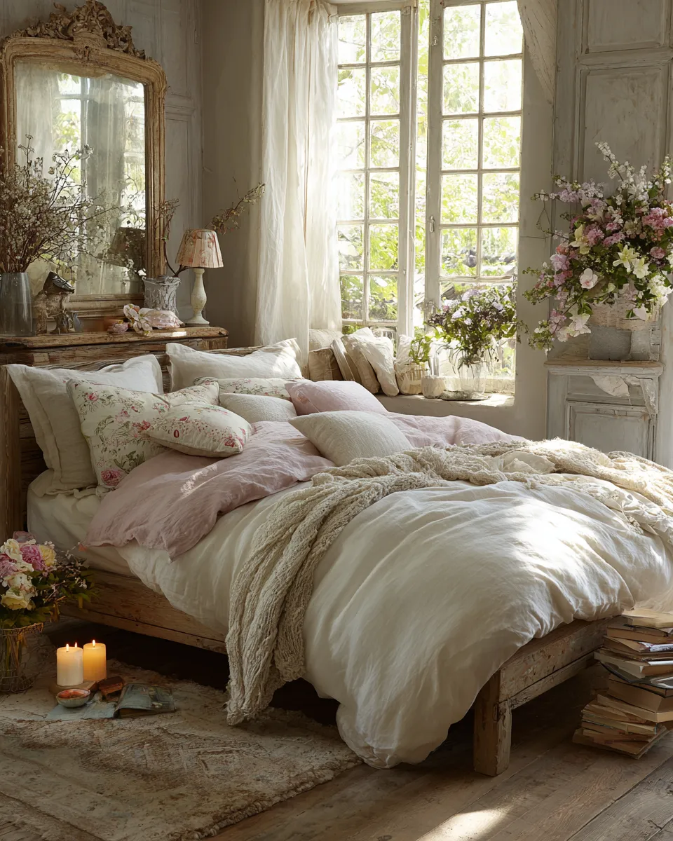 * **Vintage Accents:** Incorporate antique dressers, ornate mirrors, or delicate lamps.