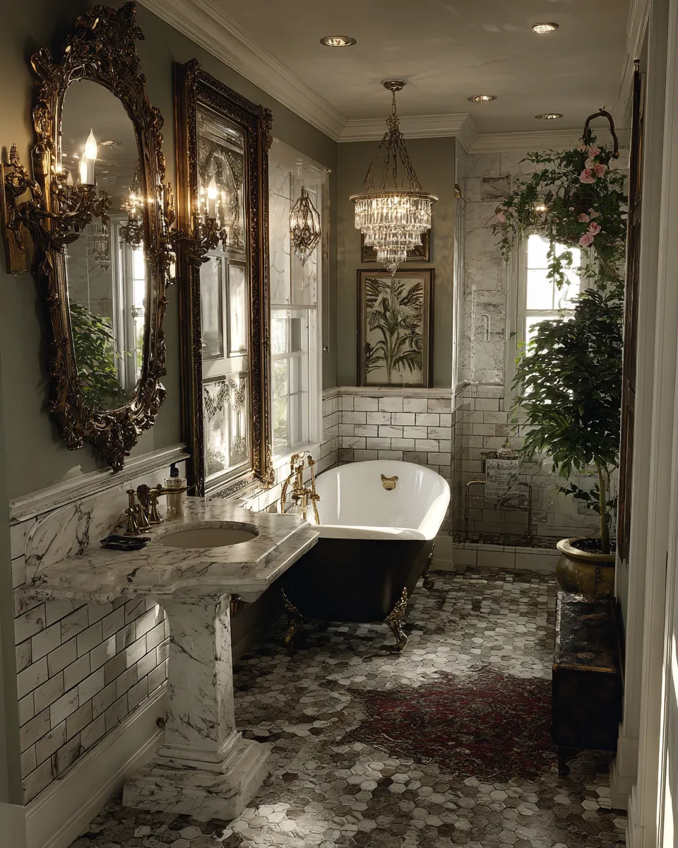 Transform your bathroom into a luxurious spa retreat with the timeless allure of French manor style! 🤍