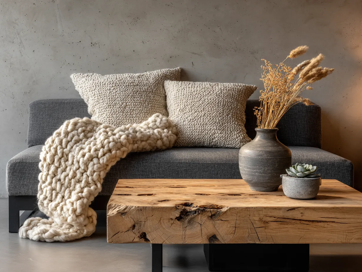 * **Textural Throws:** Drape a chunky knit wool blanket over a metal chair or a wooden sofa frame.