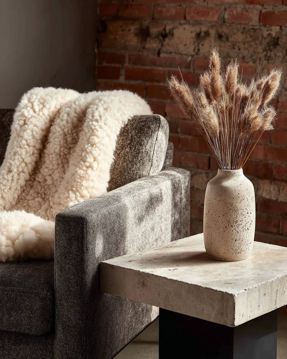 Industrial Minimalism can be softened and enriched by layering diverse textures. This adds depth, warmth, and a tactile appeal that makes raw spaces feel lived-in and inviting.