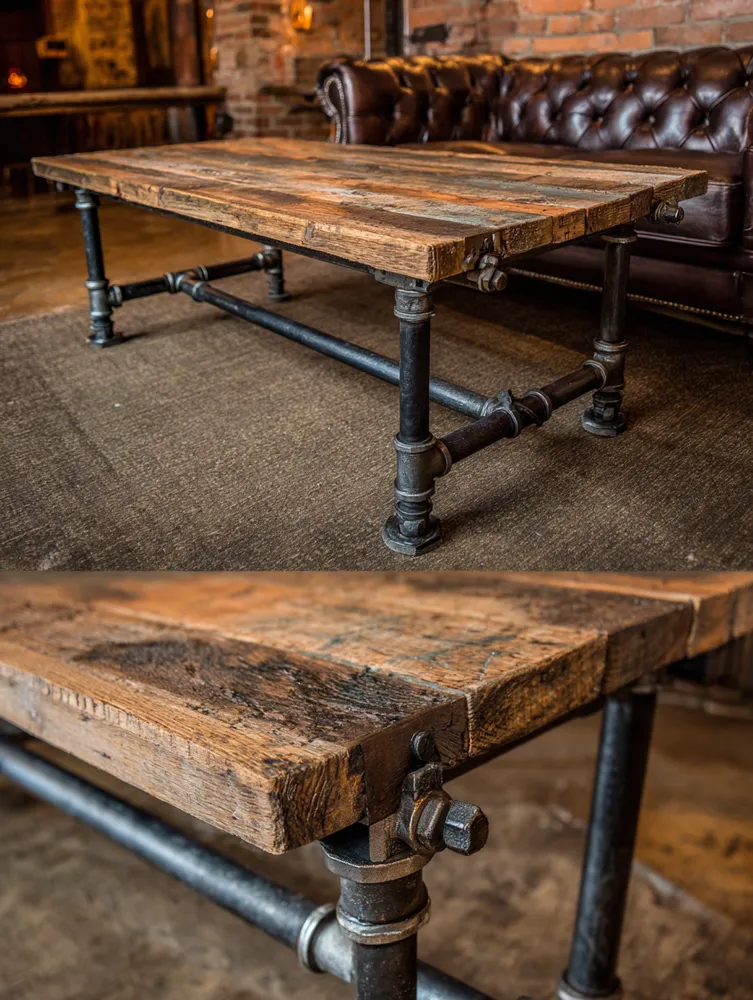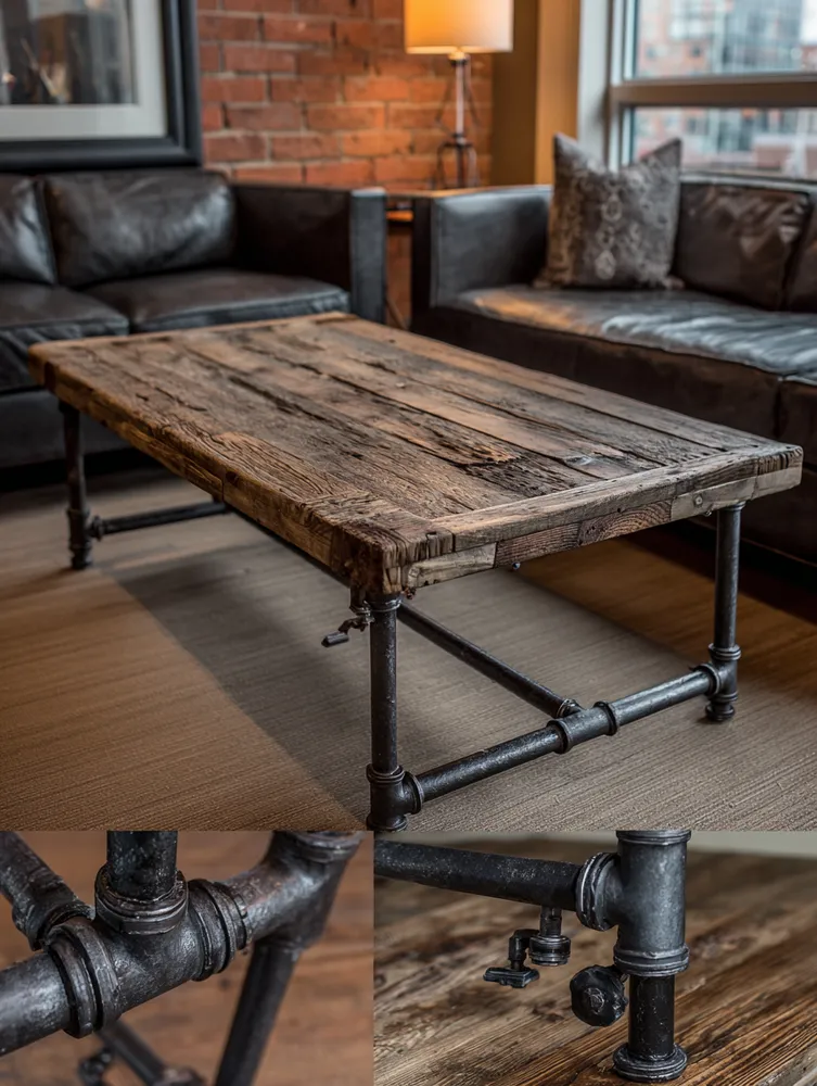 * **Pipe Shelving:** Assemble simple shelves using black iron pipes and reclaimed wood planks.