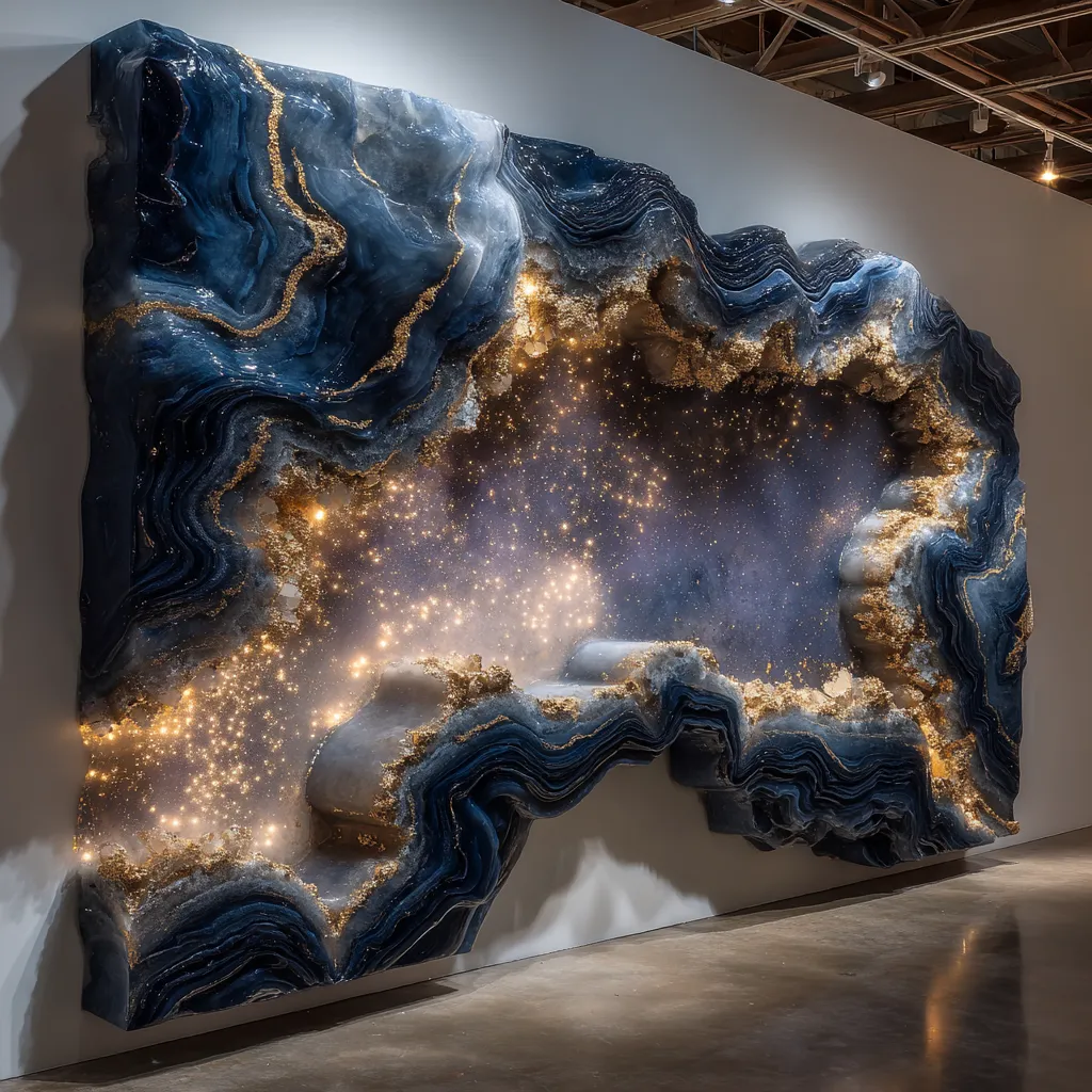 * **Radiant Detail:** Realistic textures, sparkling crystals, and intricate mineral patterns created with resin pigments and mediums.