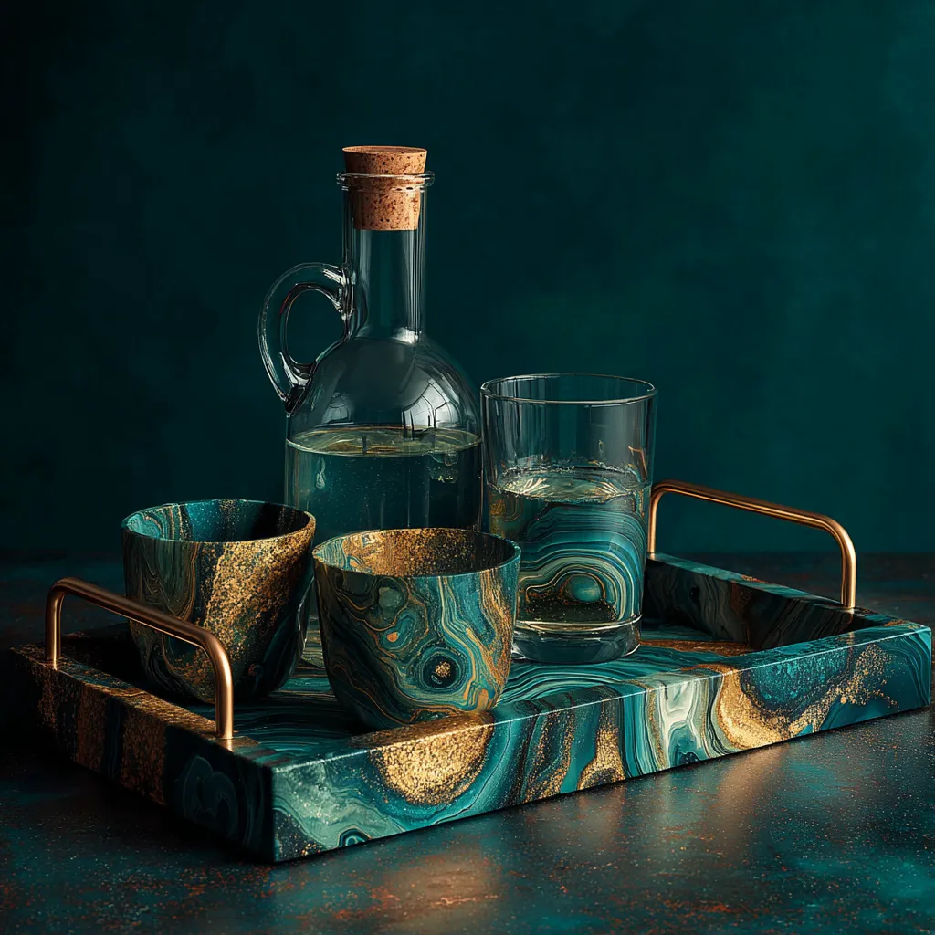 Imagine a tray with rich oceanic blues and whites, complete with sleek gold handles, or one with soft earthy tones and copper accents. It elevates any serving occasion!