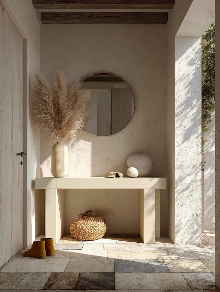 Let your entryway be a breath of fresh air! Save this for your entryway inspiration. ✨ #JapandiEntrywayIdeas#CalmHomeIdeas#MinimalistEntrywayIdeas#NatureInspiredEntry Ideas #SereneSpacesIdeas#JapandiDecor#EntrywayDecor#MinimalistDecor#HomeInspo#InteriorStyling