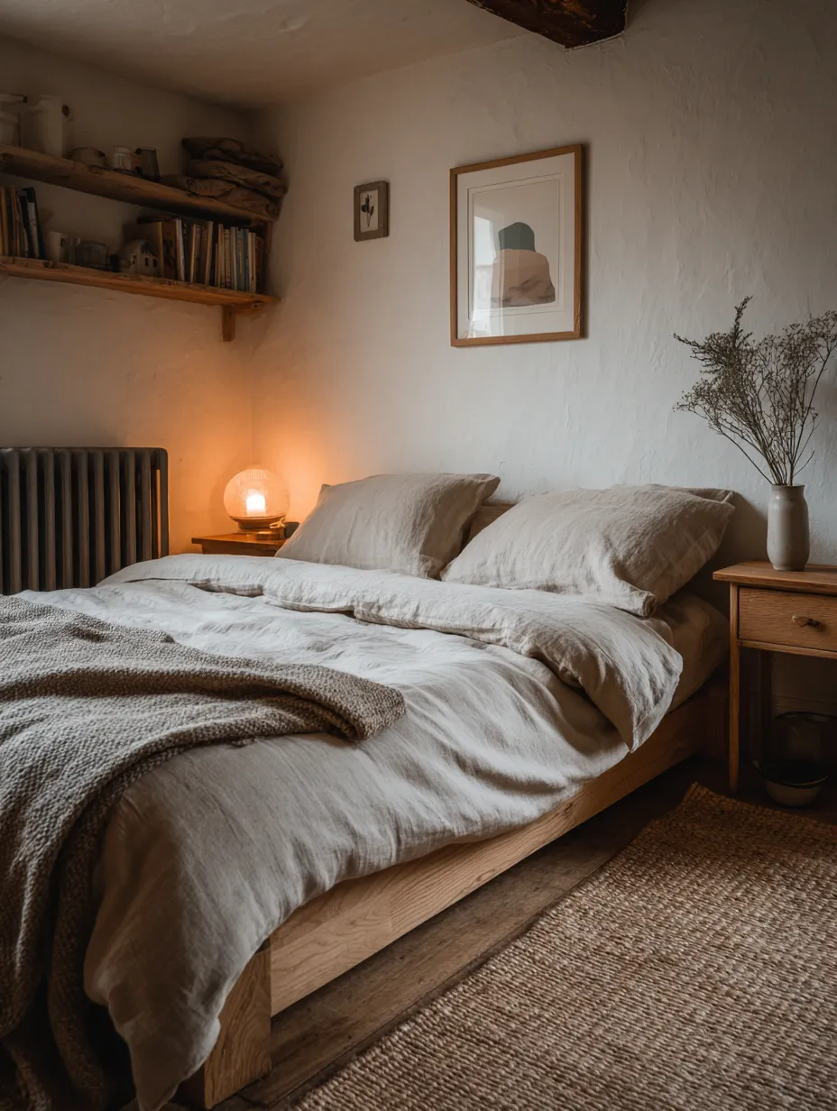 * **Soft Textures:** Linen bedding, wool throws, and woven rugs.