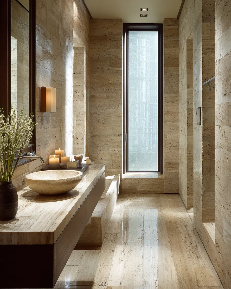 Save for your ultimate bathroom inspo! #BathroomIdeas#StoneBathroomIdeas#SpaLikeBathroomIdeas#LuxuryBathroomIdeas#NaturalStoneTilesIdeas#HomeSpa#InteriorDesign#BathroomDesign#SereneSpaces#MarbleVanity