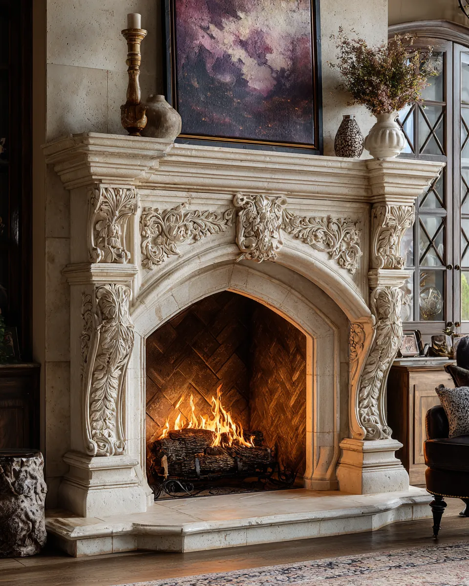 A fireplace mantel is the crown jewel of many living spaces, and a stone mantelpiece elevates it to a work of architectural art. 🗿 Whether carved from solid marble, showcasing the rugged beauty of granite, or featuring the earthy tones of natural fieldstone, a stone mantel adds significant presence and timeless appeal. It provides a robust and beautiful surface for displaying cherished objects, anchoring the room with a sense of permanence and strength.