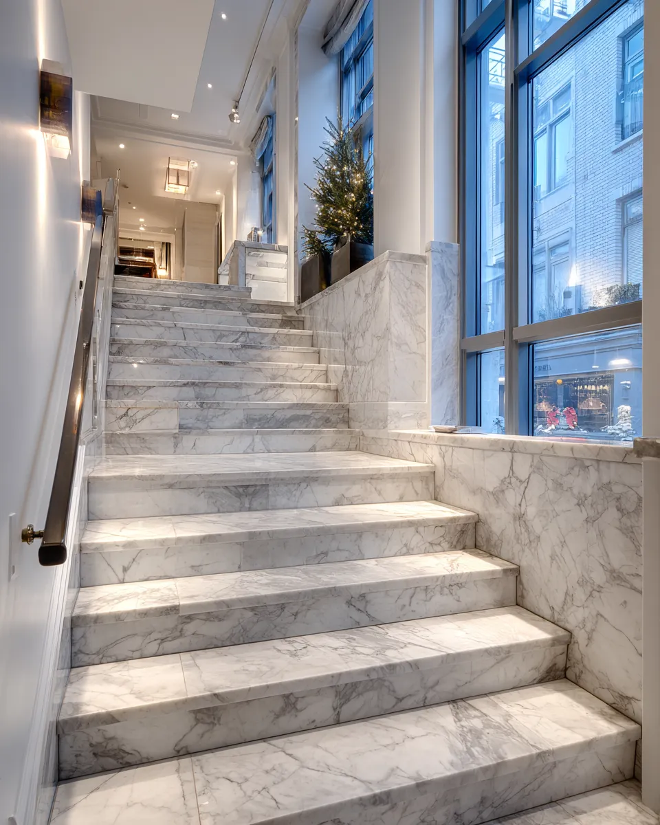 Make every step a statement with the timeless architectural power of a stone staircase. 🗿 Whether crafted from polished marble for an opulent feel, rugged granite for a natural connection, or the textured charm of slate, stone staircases exude durability and elegance. They serve as a central sculptural element, drawing the eye and adding a significant touch of luxury and permanence to any interior or exterior. It's an entrance that truly impresses. Save for your grand entrance inspiration!