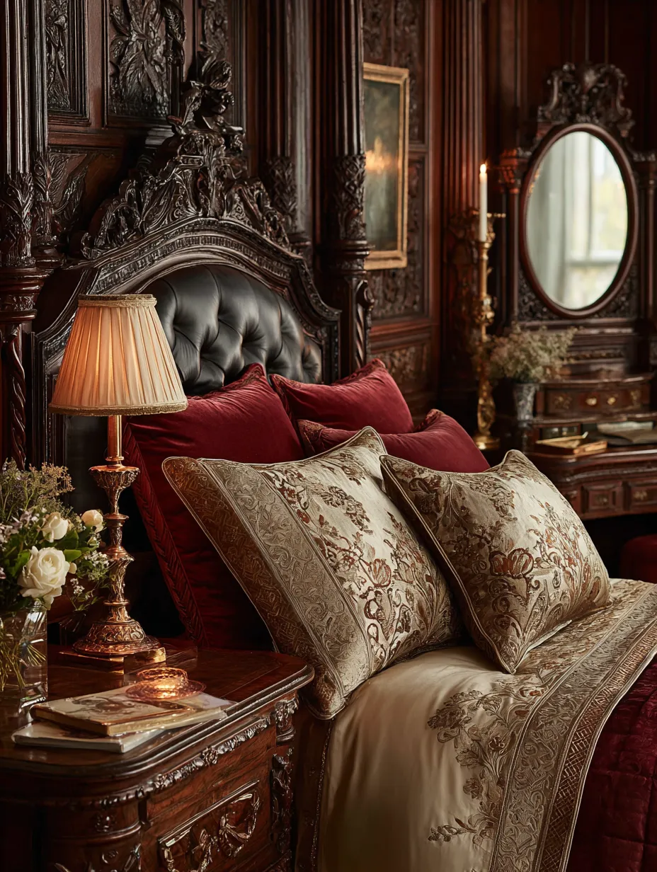 Transform your bedroom into a sanctuary of unparalleled comfort and decadence with the Gilded Age touch. Focus on layering luxurious textures that invite touch and create visual depth. Imagine a plush velvet headboard, silken duvet covers, and rich brocade accent pillows. Incorporate elements like ornate wood carvings on your nightstands or a fainting couch draped in a heavy satin. 👑