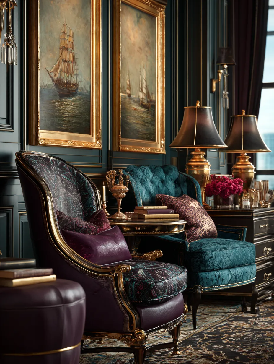 Save this for your dramatic home color palette inspiration! #GildedAgeColorIdeas#JewelToneDecorIdeas#OpulentColorIdeas#DramaticHomeIdeas#InteriorColorSchemes#HomeDecor#LuxuryInteriors#VelvetColor#GoldAccents#RichHues