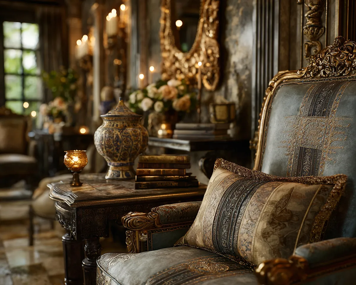 Antique Charm Meets Modern Comfort: Gilded Age Living Room Accents 💎