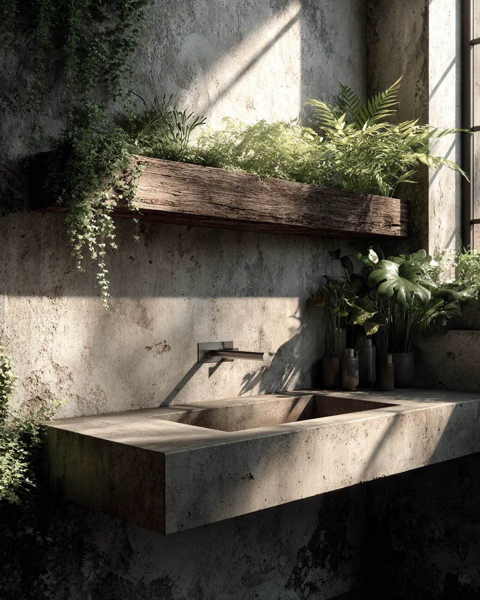 Achieve a modern, industrial-chic vibe that's both practical and stylish. Save this for your bathroom renovation inspo! #ConcreteBathroomIdeas#IndustrialBathroomIdeas#ModernBathDecor#RawMaterialsDesign#MinimalistBathroom#HomeDecor#InteriorDesign#BathroomInspo#DesignTrends#BathroomRenovation