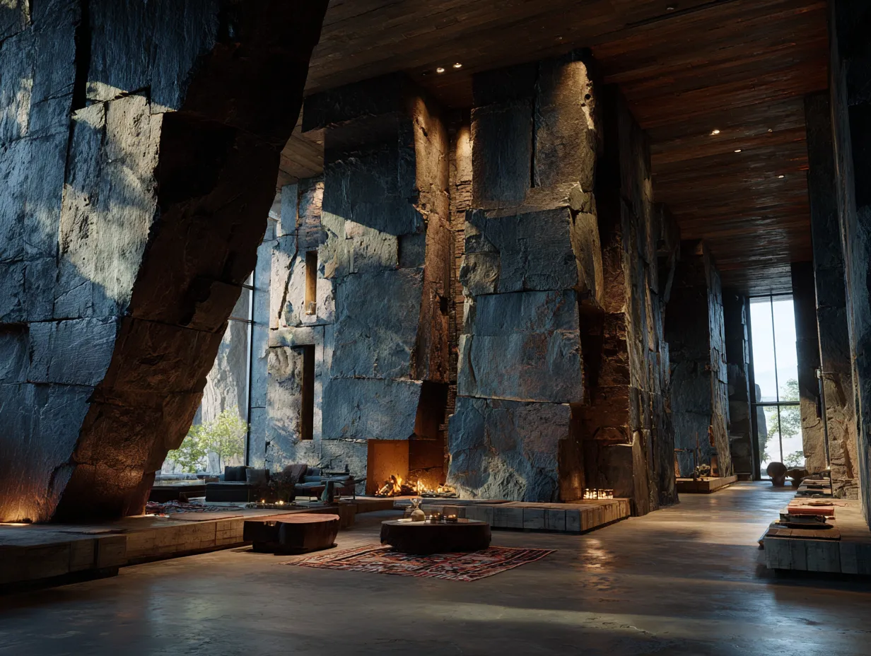 Let the earth’s artistry transform your spaces. Save this for your architectural inspiration! #RoughHewnStoneIdeas#NaturalFormDecor#StoneFireplaceIdeas#ArchitecturalDetails#ElementalBeauty#HomeDecor#InteriorDesign#FocalPointIdeas#NaturalMaterials#TextureInspiration