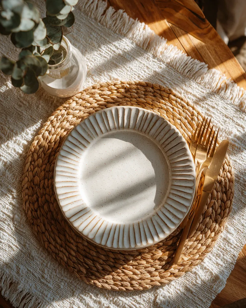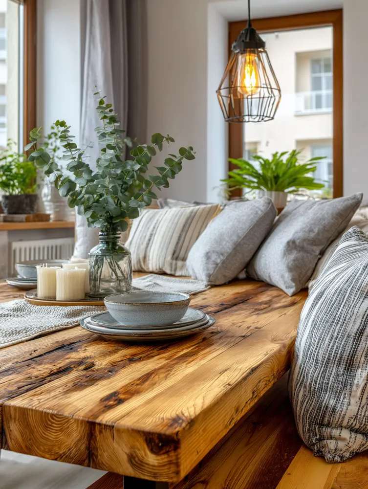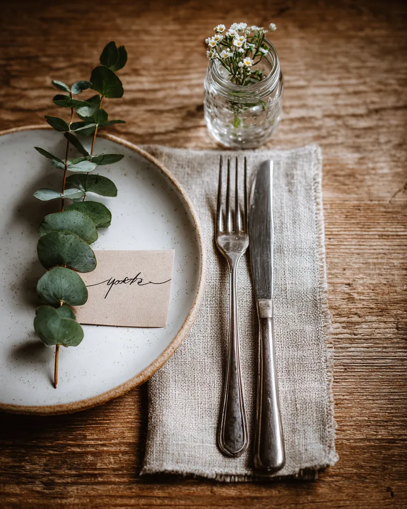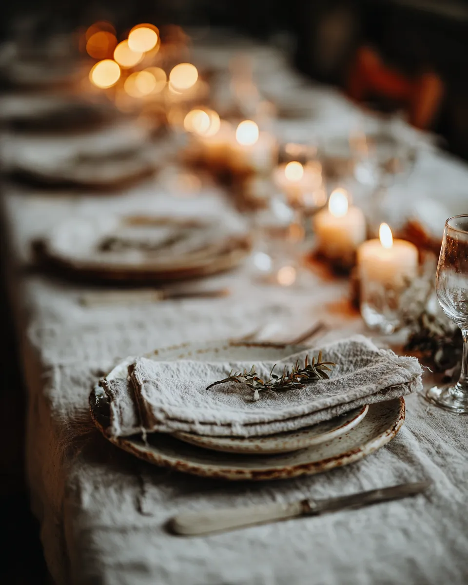 • **Natural Materials:** Use wooden placemats, linen napkins, and ceramic tableware.