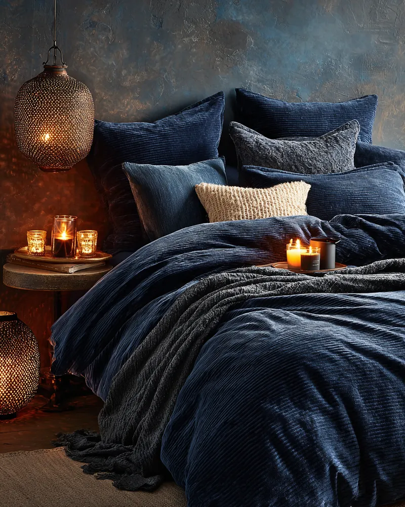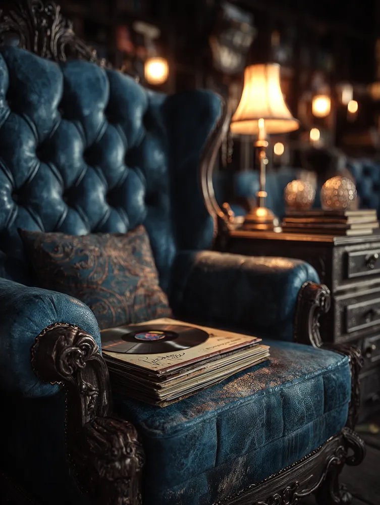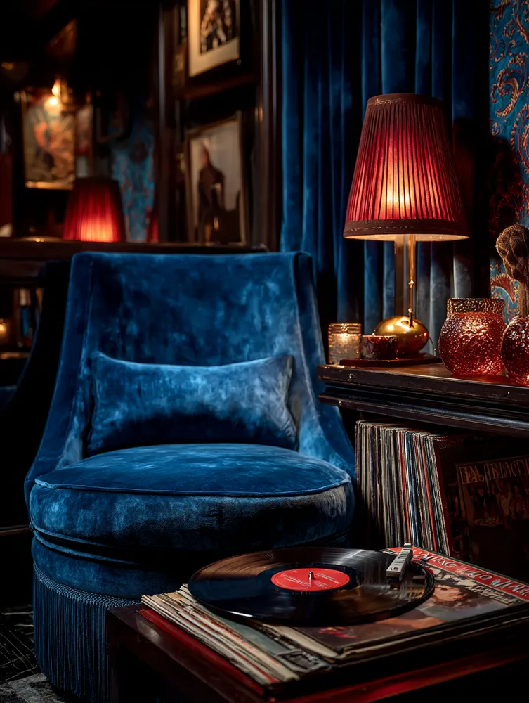 Save this for your dreamy bedside refresh! #VelvetNightstandIdeas#GlamorousBedroomIdeas#VintageNightstandIdeas#BedsideTableStylingIdeas#HomeDecorInspo#InteriorDesign#CozyBedroom#DesignStyling#LuxeLiving#VinylCollection