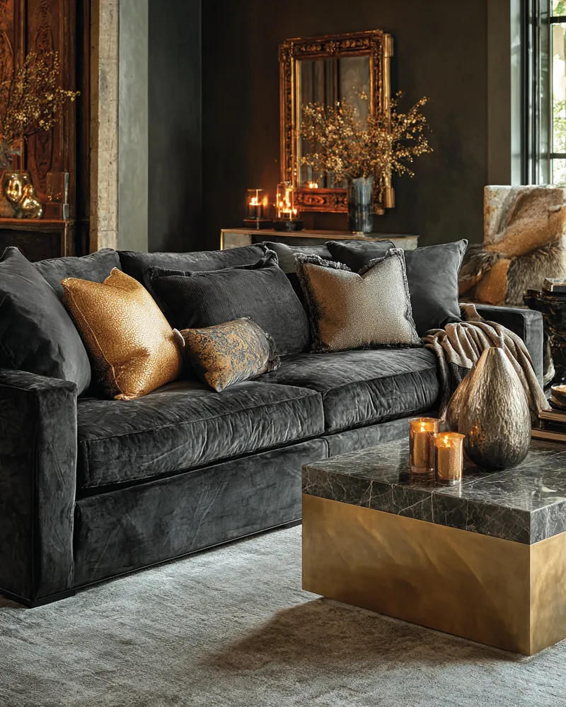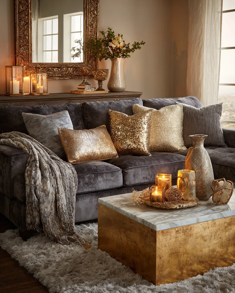 Save this for your living room glow-up! #GoldLivingRoomIdeas#GlamorousHomeIdeas#VintageLivingRoomIdeas#HomeDecorAccentsIdeas#InteriorDesignTips#DesignInspo#MetallicDecor#WarmInteriors#LuxuryLiving#GoldDecor