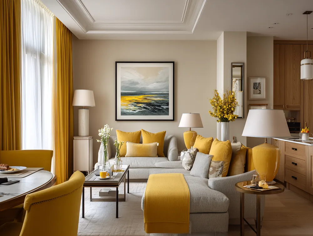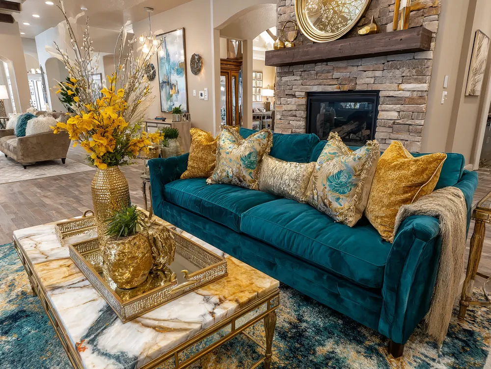 Want to add instant sophistication and a touch of irresistible glamour to your living room? Gold accents are your best friend! 🎶 From subtle touches to statement pieces, gold brings warmth and a luxurious sheen. Think a brass coffee table, gold-framed mirrors, elegant floor lamps, decorative trays, or even gold hardware on furniture. They beautifully complement rich colors like navy, emerald, and deep red, and add a radiant glow that enhances any space. It's all about mindful application for maximum impact. 🤩