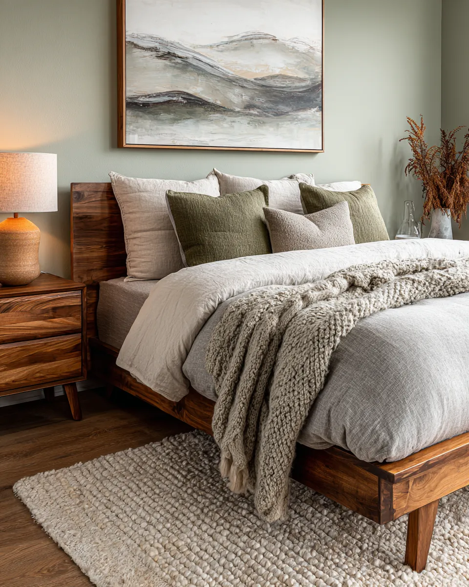 • **Warm Textiles:** Layer linen bedding, wool throws, and textured cushions.