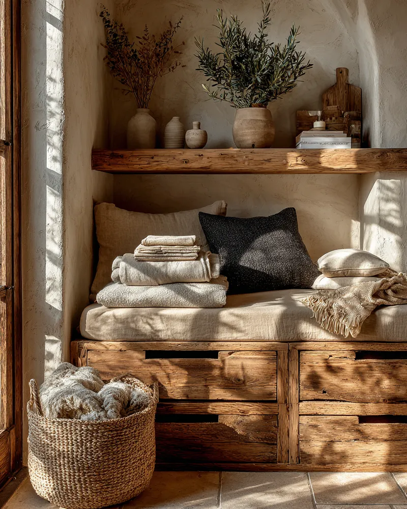 In a sustainable home, every item has a purpose, and thoughtful storage is key to maintaining a clutter-free, serene environment. It’s about making intentional choices! My favorite solutions integrate seamlessly with the decor, often using natural materials. Tips for smarter storage: * **Built-in Nooks:** Utilize alcoves for hidden shelving or cabinets. * **Multi-functional Furniture:** Ottomans with storage, benches with drawers. * **Woven Baskets:** Beautiful for hiding everyday items stylishly. * **Vertical Space:** High shelving for less-used items. Investing in smart storage means investing in peace of mind and a more organized, eco-conscious life. Save this post for later! 🤍