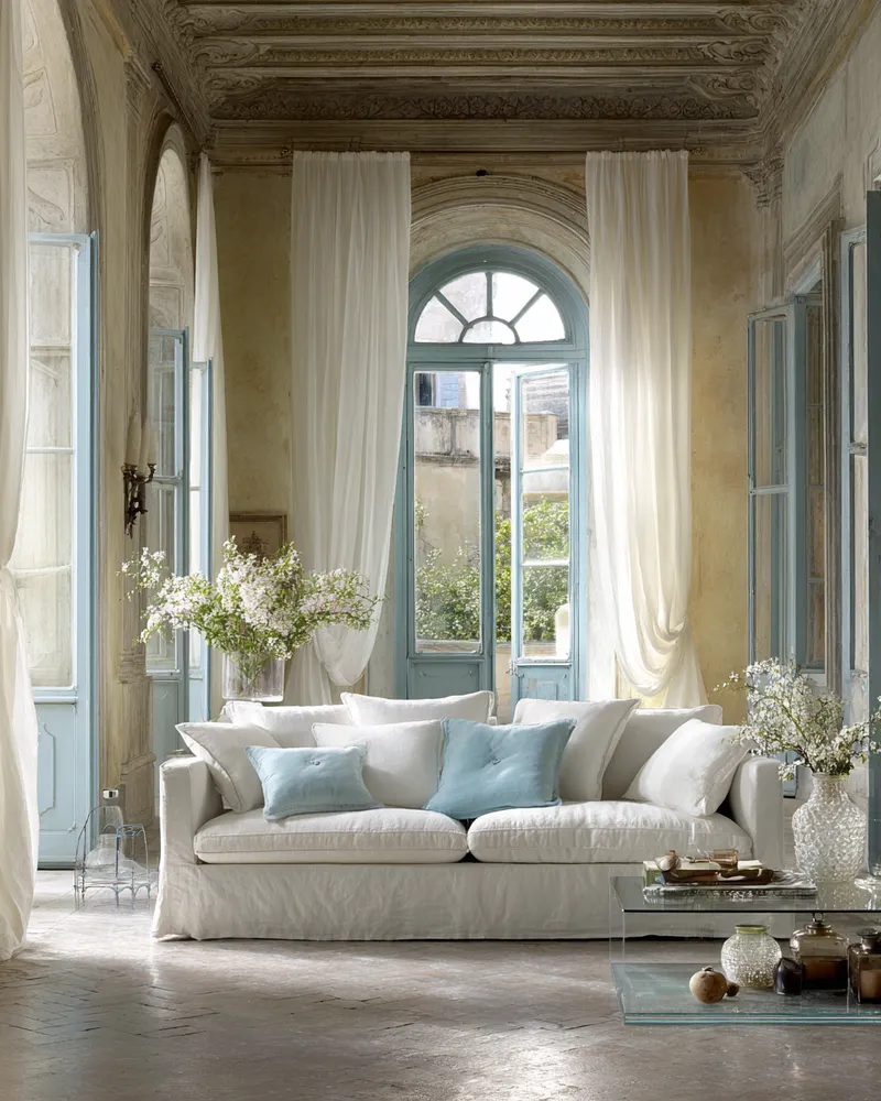 🌿 **Greenery:** A few well-placed plants add life and balance to the ethereal feel.