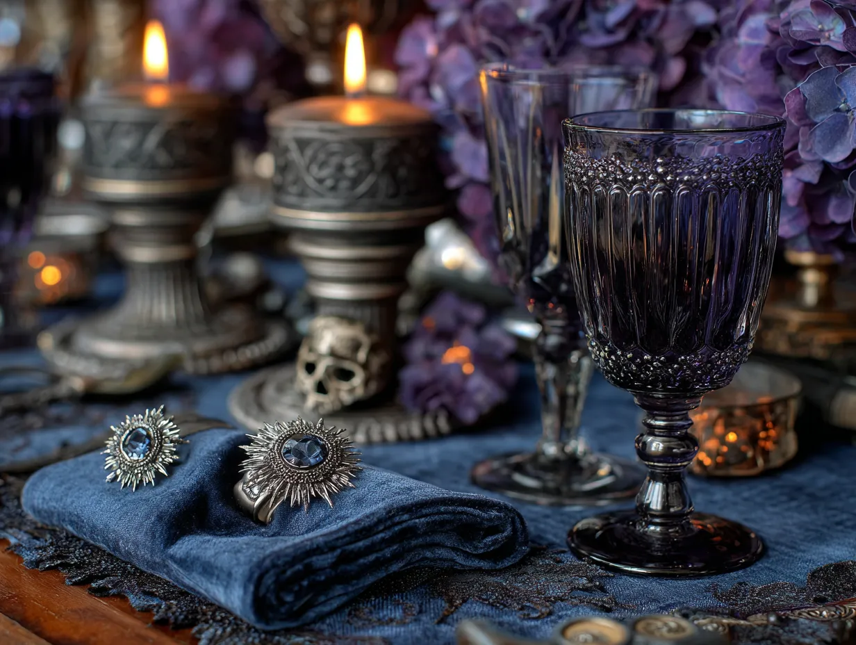 🌸 **Centerpiece Touches:** Incorporate deep jewel-toned flowers, dark greenery, or even small decorative moons or crystal accents.