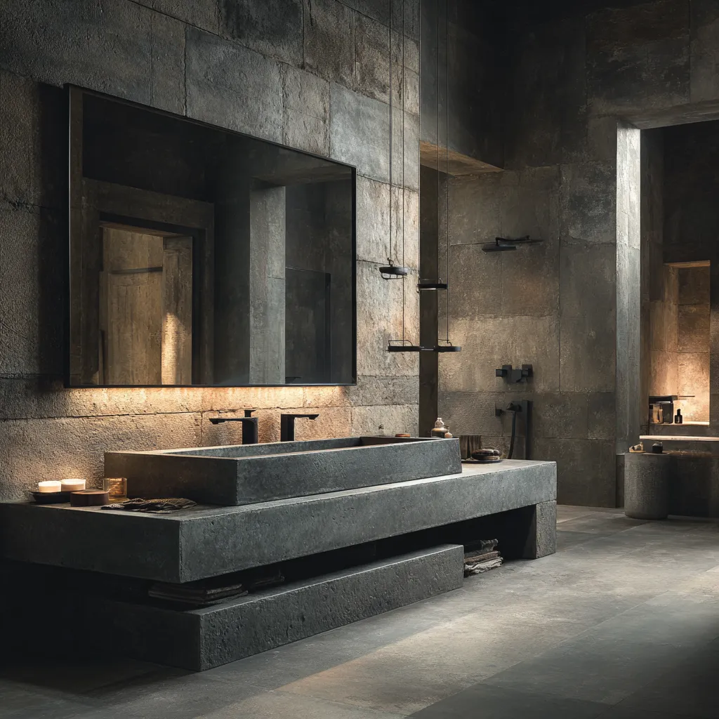 Elevate your bathroom to an architectural sanctuary with Brutalist design principles. The focus here is on raw materiality and bold, sculptural forms that evoke a sense of raw luxury.