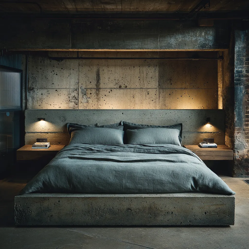 Make a powerful statement in your bedroom with a Brutalist-inspired bed frame. Crafted from raw concrete, this piece brings undeniable architectural weight and a unique aesthetic.