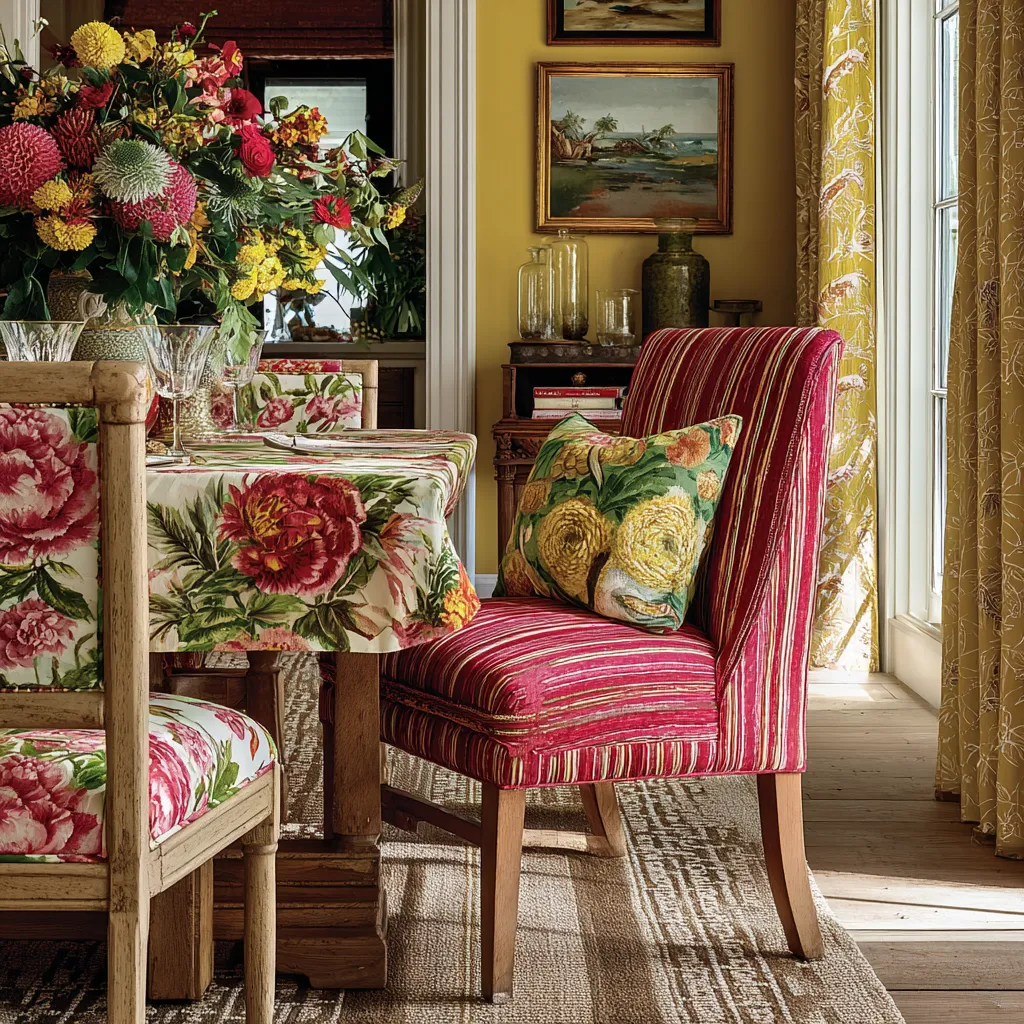 Playful Patterns: Mixing Prints for a Unique & Joyful Dining Room! 🌸🌿