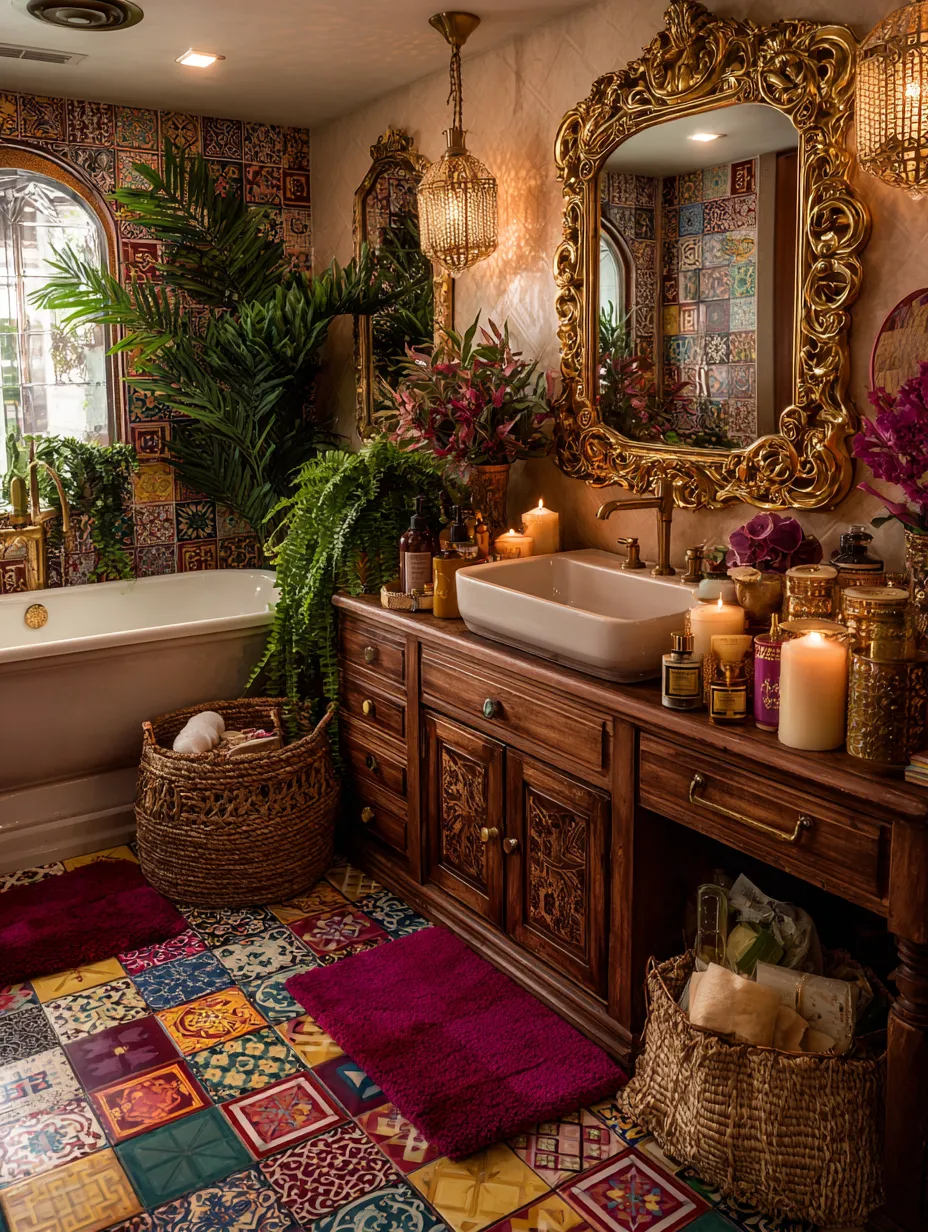 Vibrant Bohemian Bathroom: Bold Colors & Textures 🚿