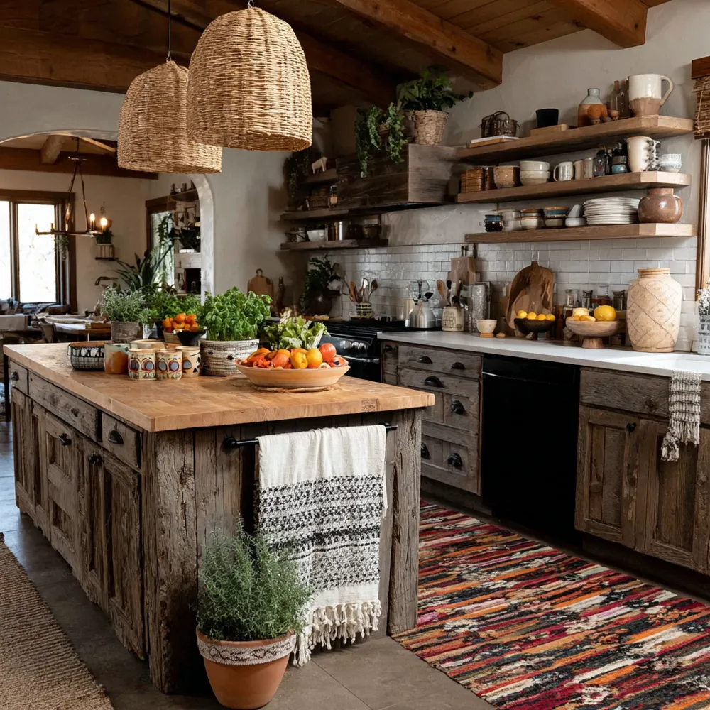 Boho Farmhouse Fusion: Cozy Global Accents for Your Kitchen 🏡🌿