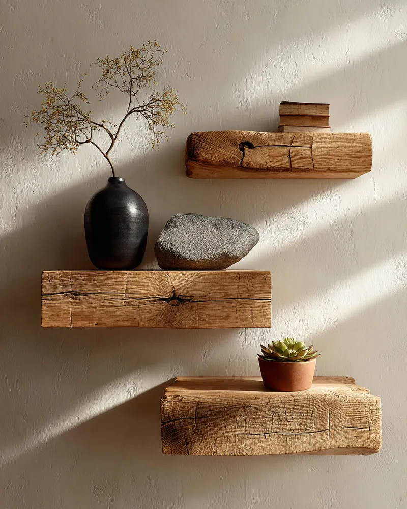 Minimalist shelving isn't just about empty space; it's about curated beauty and functional art. At 'The Artisan's Touch', we love integrating bespoke elements that make the shelves as striking as what's on them. 🛠️ Consider shelves made from solid, hand-planed wood with visible grain, mounted with sturdy, forged iron brackets. Style them with carefully chosen handcrafted ceramics, a single sculptural art piece, or a few well-loved books. The key is intentionality – every item should earn its spot. This approach ensures your shelves are both clean and characterful, reflecting your appreciation for quality. Save this for your next shelving project! ✨ #MinimalistShelvingIdeas#BespokeShelvingIdeas#HandcraftedStorageIdeas#ArtisanDecorIdeas#ShelvingIdeas#InteriorDesign#DecorTips#WallDecorIdeas#Craftsmanship#HomeOrganization