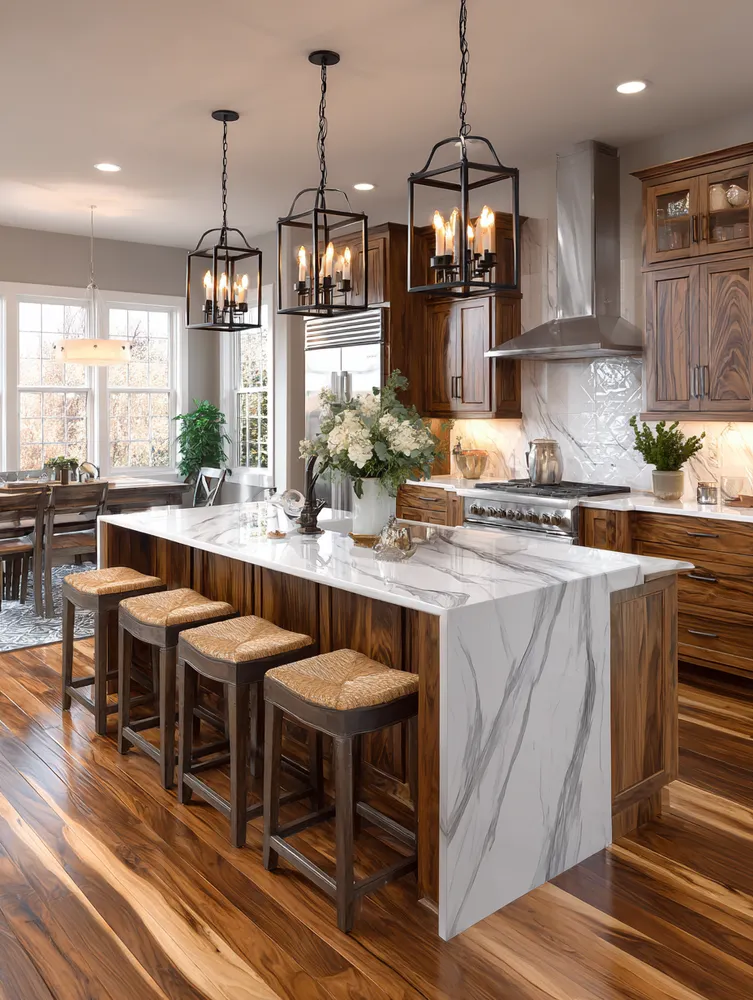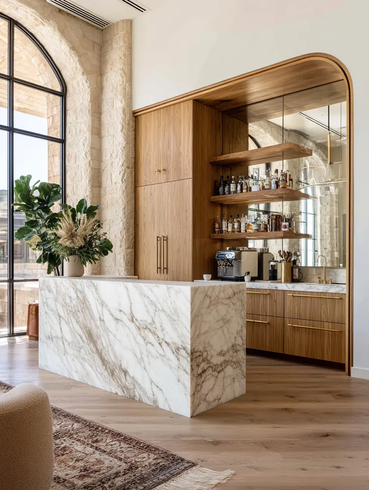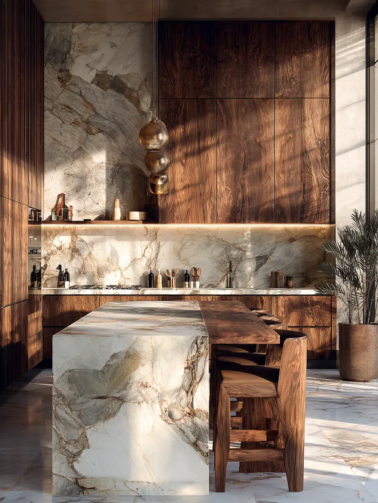 For a design that blends warmth and luxury, look no further than the combination of marble and wood. 🪵 This pairing creates a sophisticated yet inviting aesthetic, perfect for modern homes. Think a marble countertop with rich wood cabinetry, or a marble fireplace hearth surrounded by warm wood panels. The natural textures complement each other beautifully, offering a balance of coolness and warmth. It's a match made in design heaven! 💫