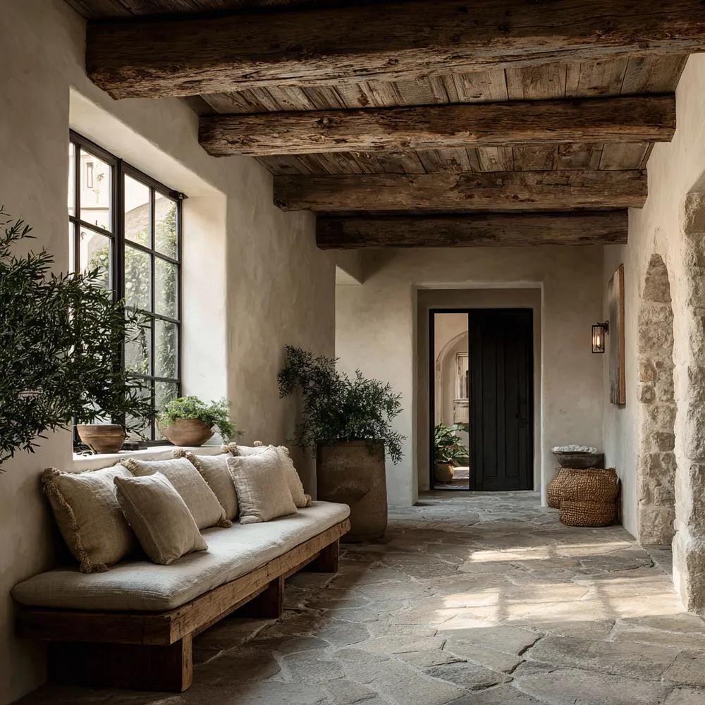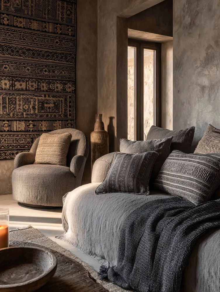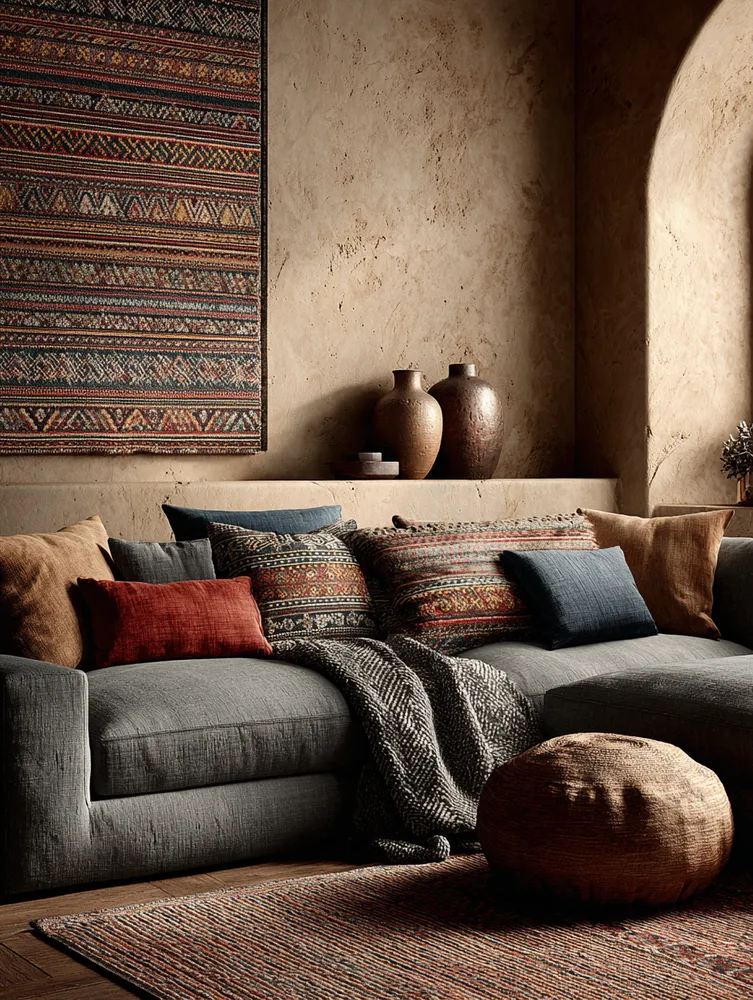 * **Clay/Earth:** Natural plaster finishes create a warm, breathable surface.