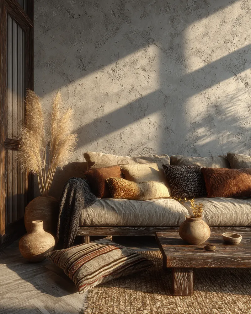 Create a serene sanctuary by embracing the Wabi-Sabi philosophy in your bedroom, celebrating local textures and raw materials. ✨ It's about finding peace in the understated and imperfect.