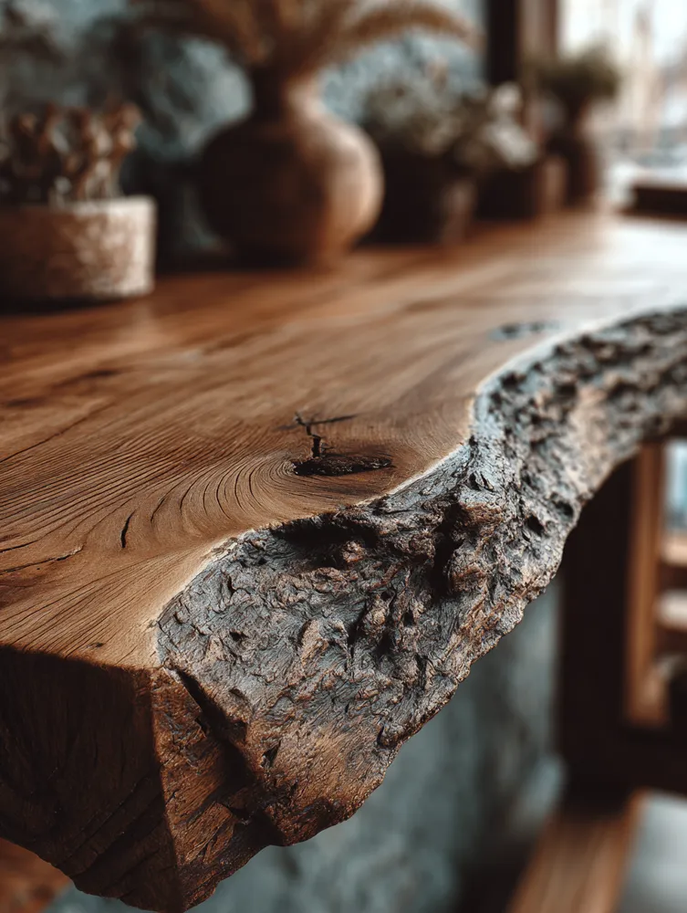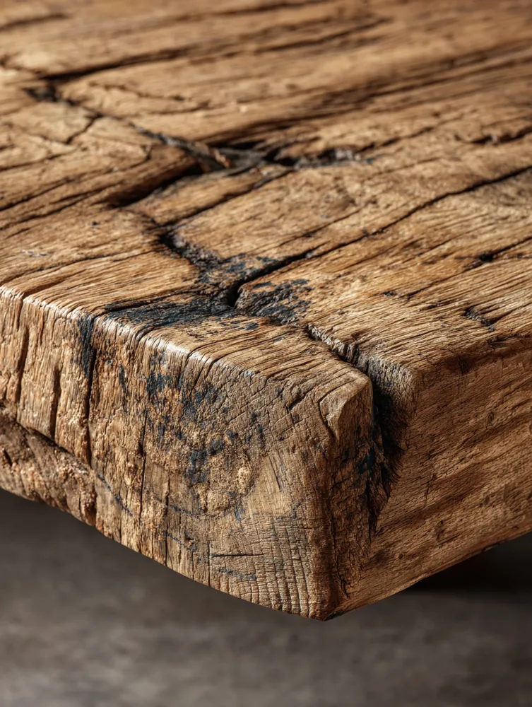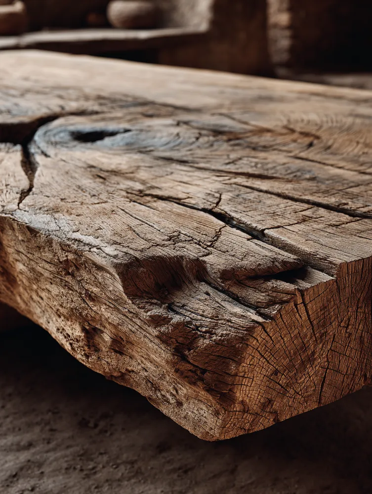 * **Raw Wood:** Unfinished or lightly treated wood with visible grain and knots.