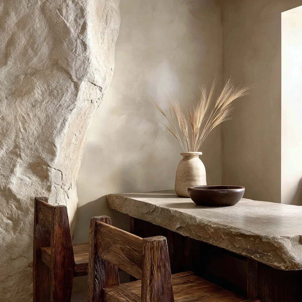 Rustic Elegance: Wabi-Sabi Style with Natural Stone & Wood Elements 🤎