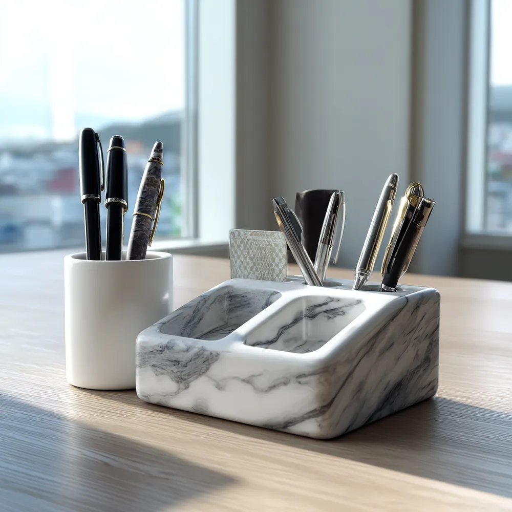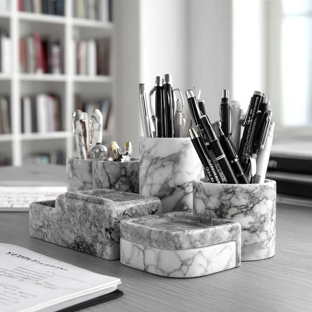 Your home office deserves a touch of luxury! 💻 Incorporate marble accents to create a chic and inspiring workspace. Think marble desk organizers, coasters, or even a small marble pen holder. These small touches add sophistication and a sense of calm to your daily grind. The cool, smooth surface of marble can be a surprisingly grounding element in a busy workspace. Elevate your desk setup! 💡