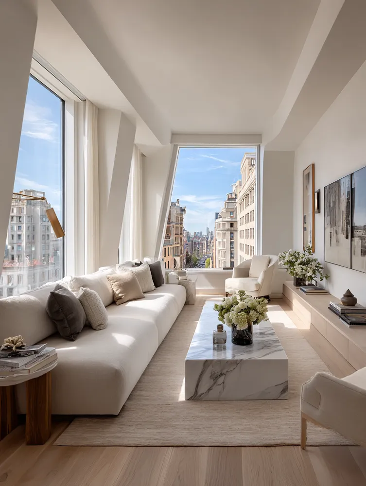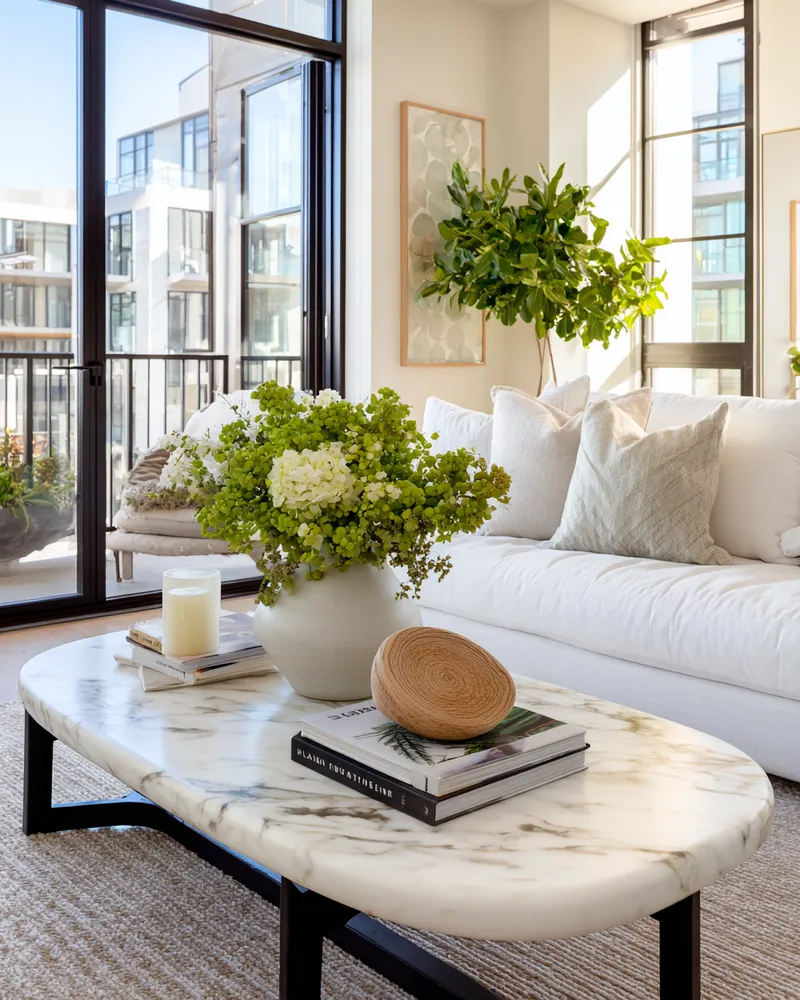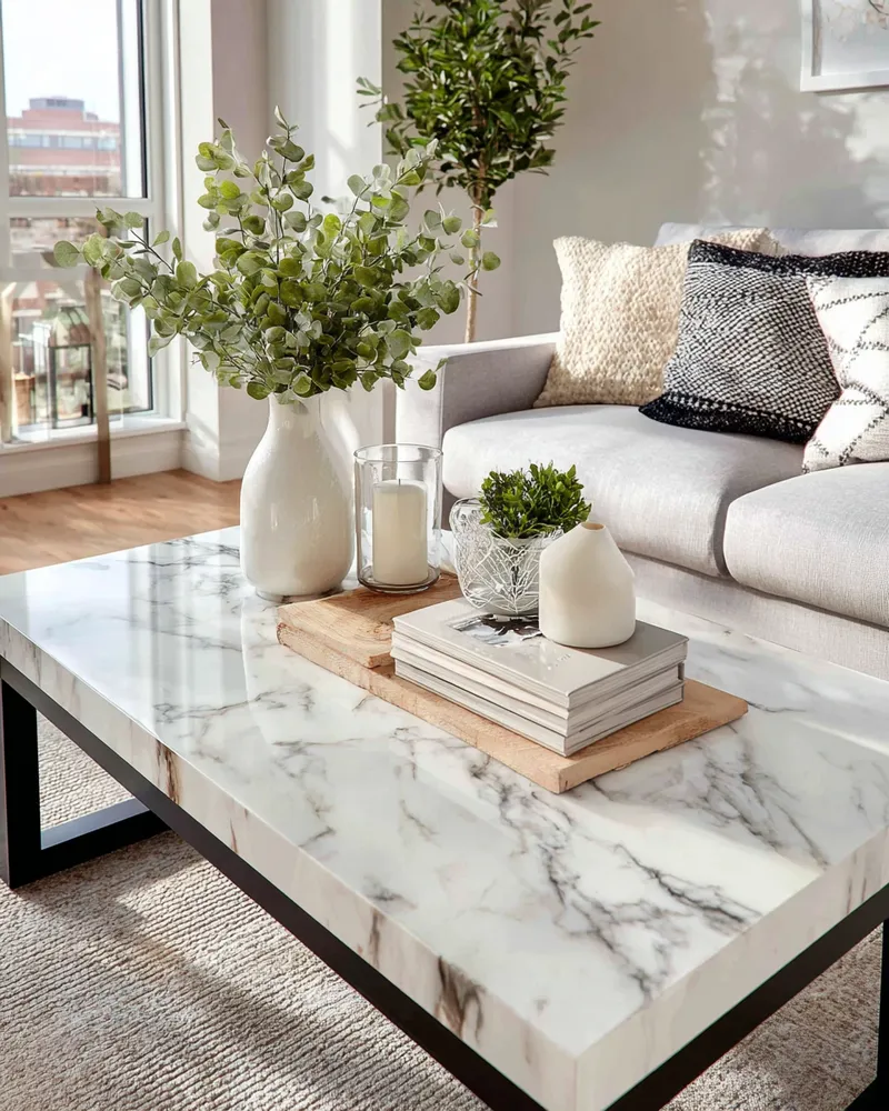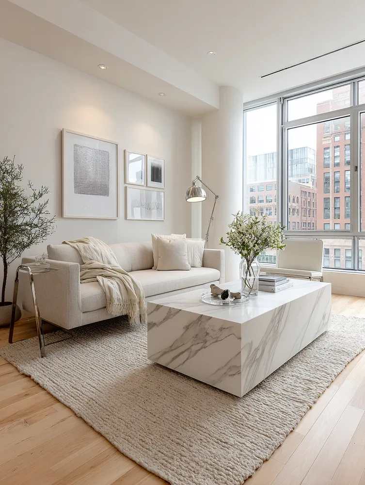 Marble Accents for a Chic Minimalist Living Room ✨