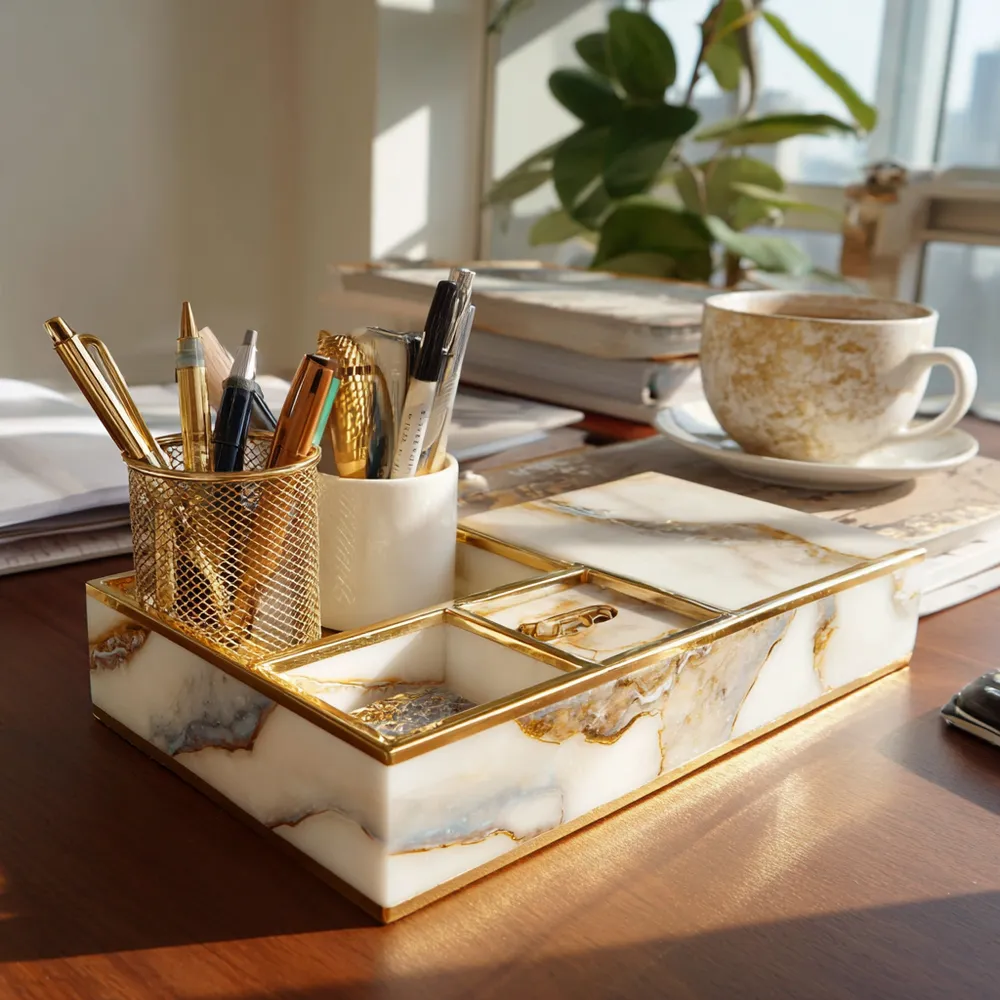 Marble Desk Accents: Chic Home Office Vibes! 🤍