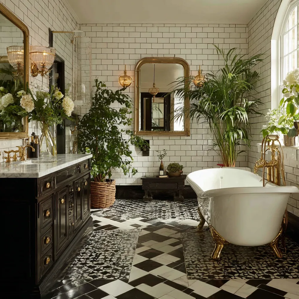 Transform your bathroom into a luxurious sanctuary with the timeless glamour of Art Deco. Itโs about rich materials, bold patterns, and a touch of spa-like indulgence. โจ Key features for a Deco bathroom: * **Geometric Tiles:** Bold black and white or colored geometric patterns for floors or walls. * **Marble Accents:** Use marble for countertops, vanities, or wall panels. * **Brass or Chrome Fixtures:** Polished faucets, showerheads, and hardware. * **Statement Mirror:** An ornate, gilded, or geometric mirror above the vanity. * **Luxurious Textures:** Velvety towels, a plush bathmat, and elegant accessories. Indulge in daily luxury. Save this for your bathroom renovation inspo! ๐ซ