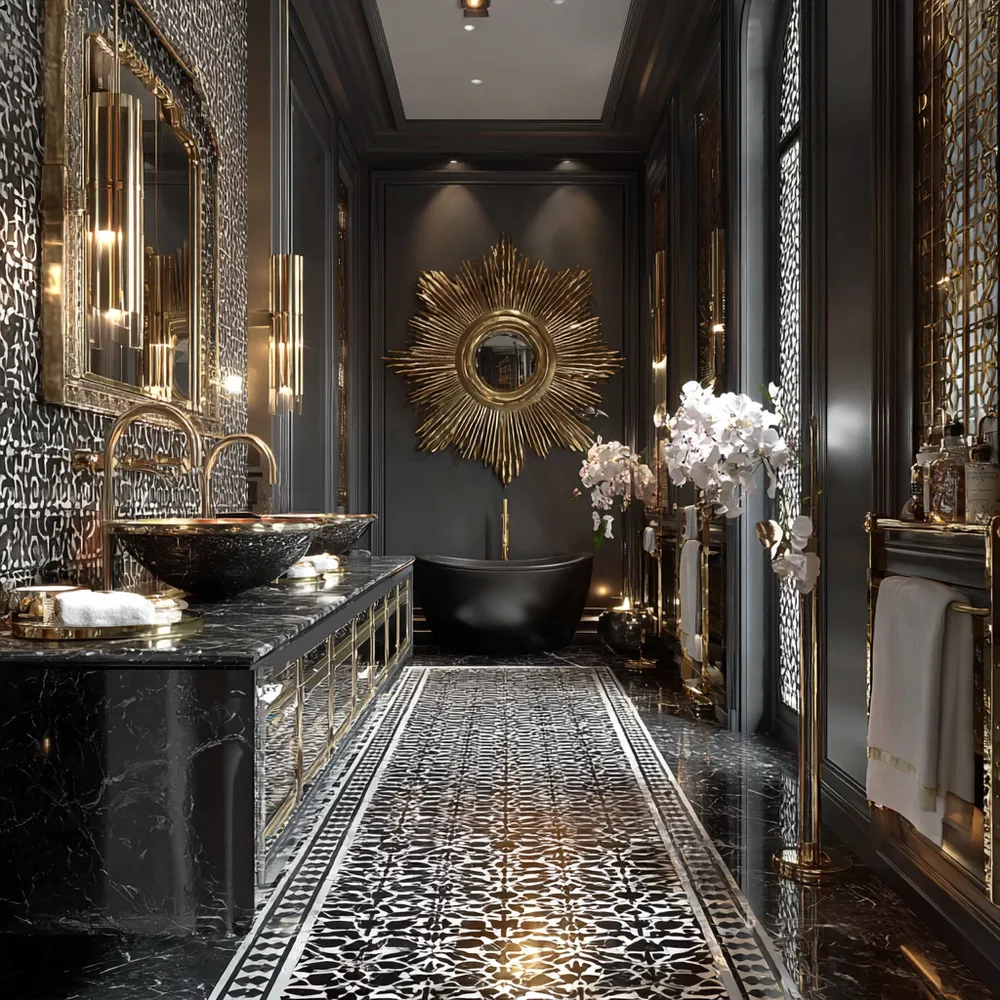 Art Deco Glamour: Geometric Lines & Luxurious Textures for a Statement Bathroom ๐๐ค