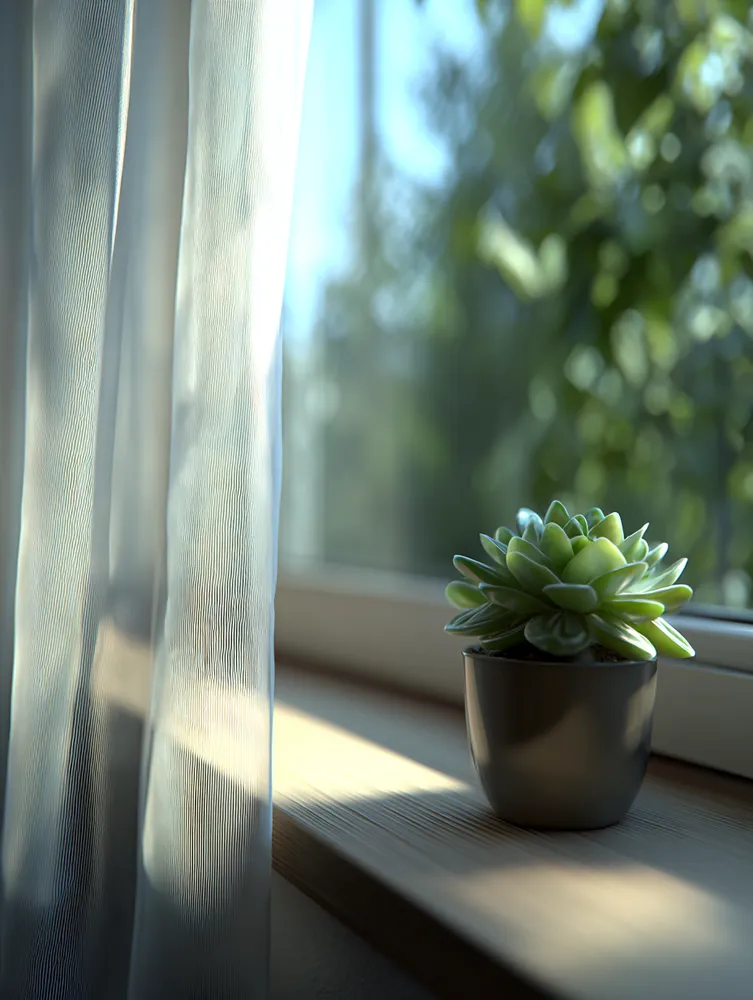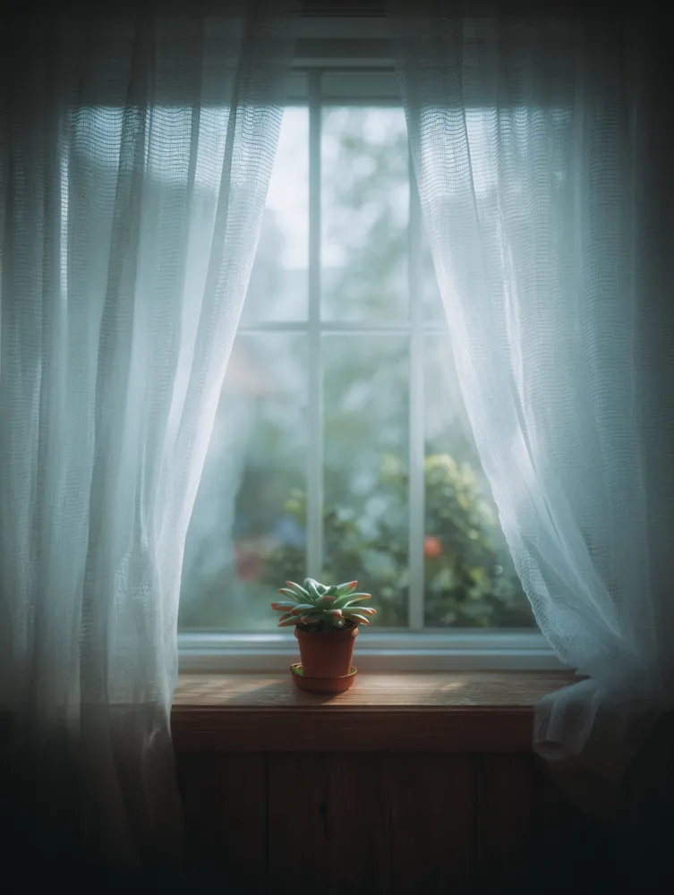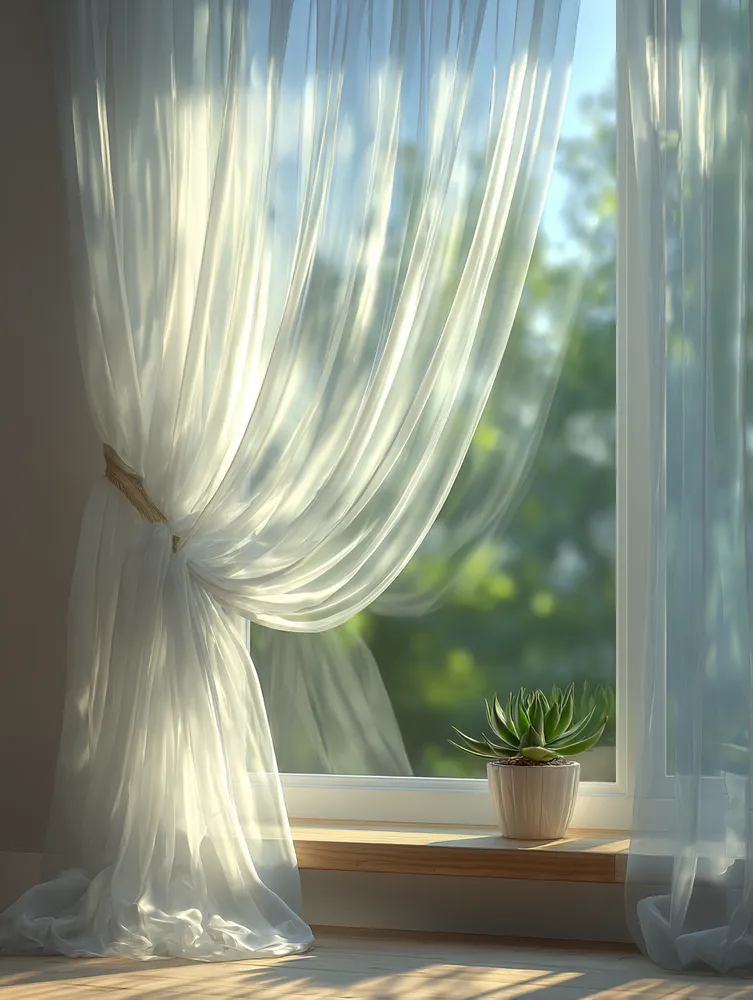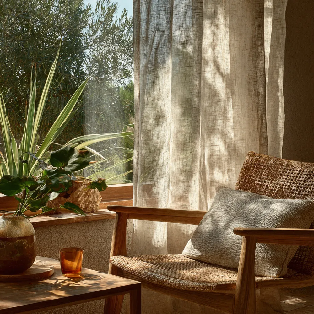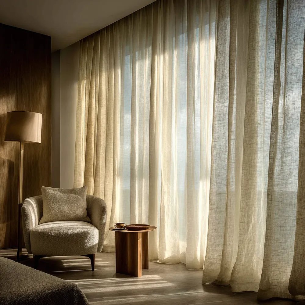 Linen or cotton sheer curtains are perfect. They diffuse light beautifully, offering privacy without blocking the view.