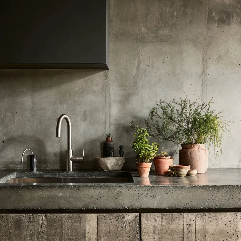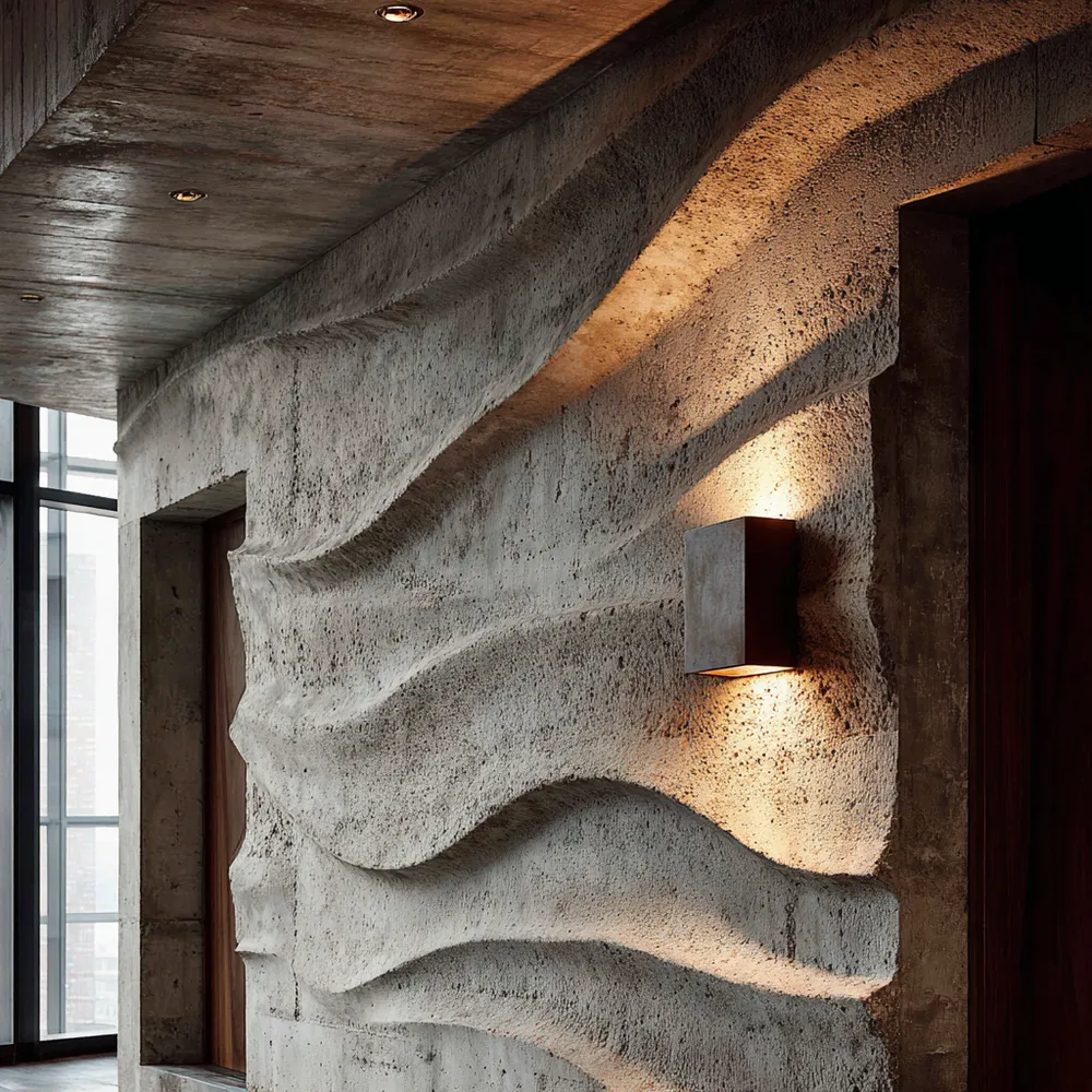 1. **Textural Variety:** Pair raw, board-formed concrete with smoother finishes, metal accents, or integrated greenery.