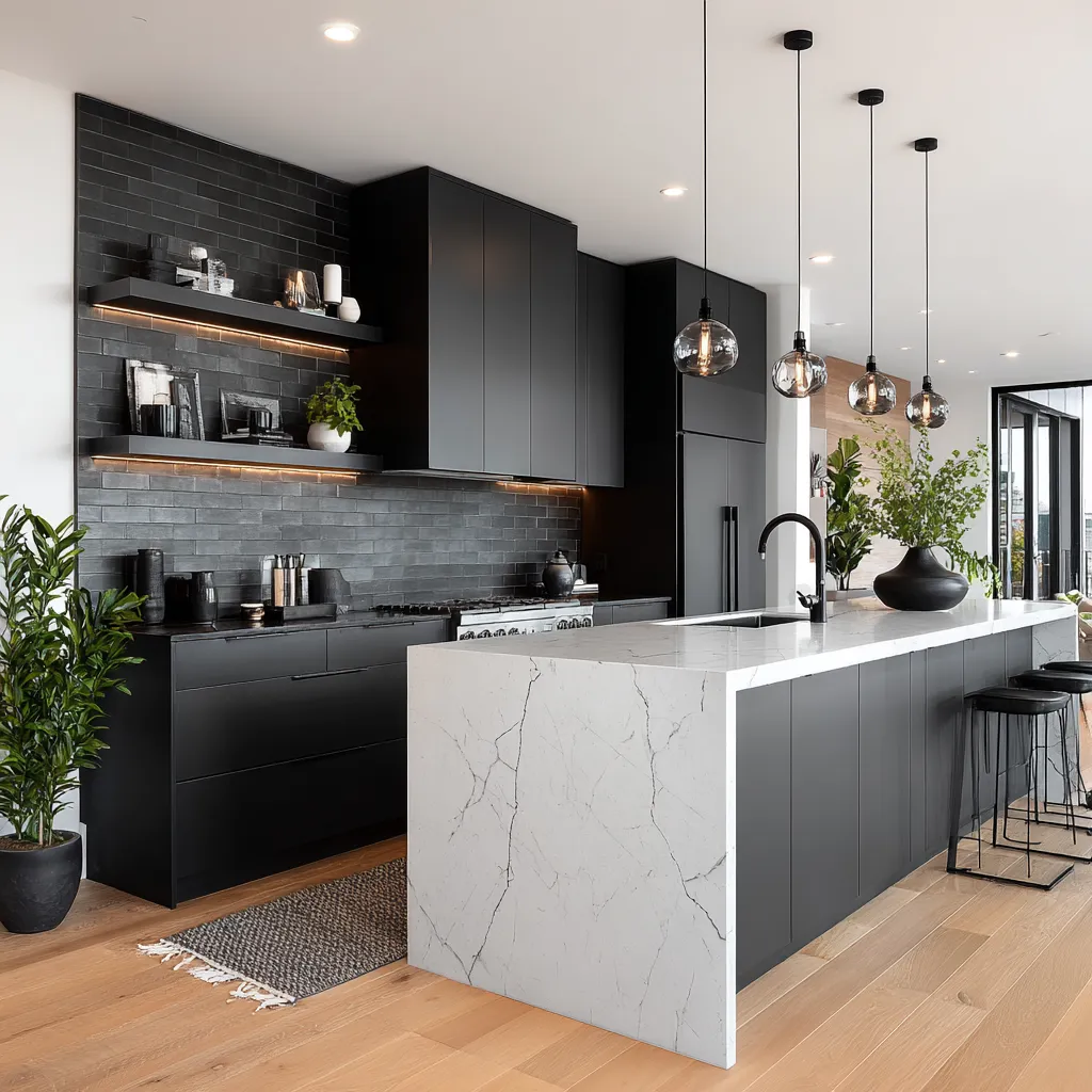 This creates a kitchen that's both functional and incredibly stylish. Save this for your culinary inspiration! ✨ #DarkKitchenIdeas#BlackCabinetIdeas#ModernKitchenIdeas#ChicKitchenIdeas#KitchenDesignIdeas#HomeRenovation#InteriorDecor#KitchenInspiration#MonochromaticKitchen#SophisticatedHome