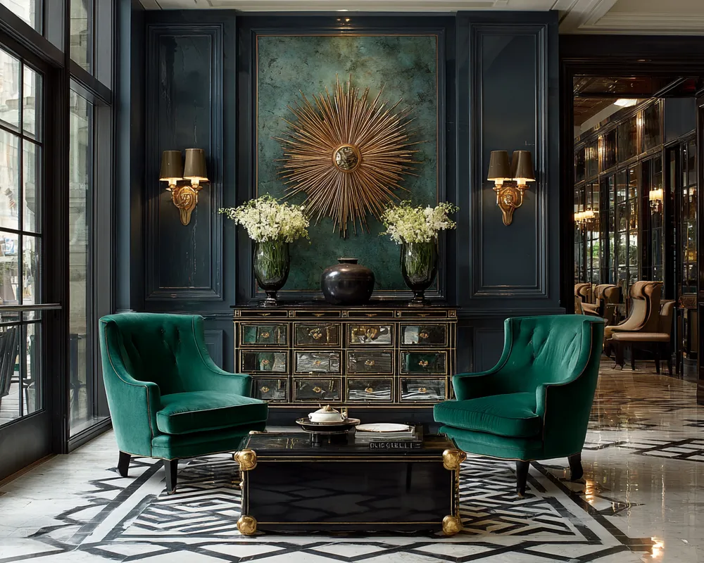 Art Deco Glamour: Bold Patterns & Luxe Materials! 💎✨