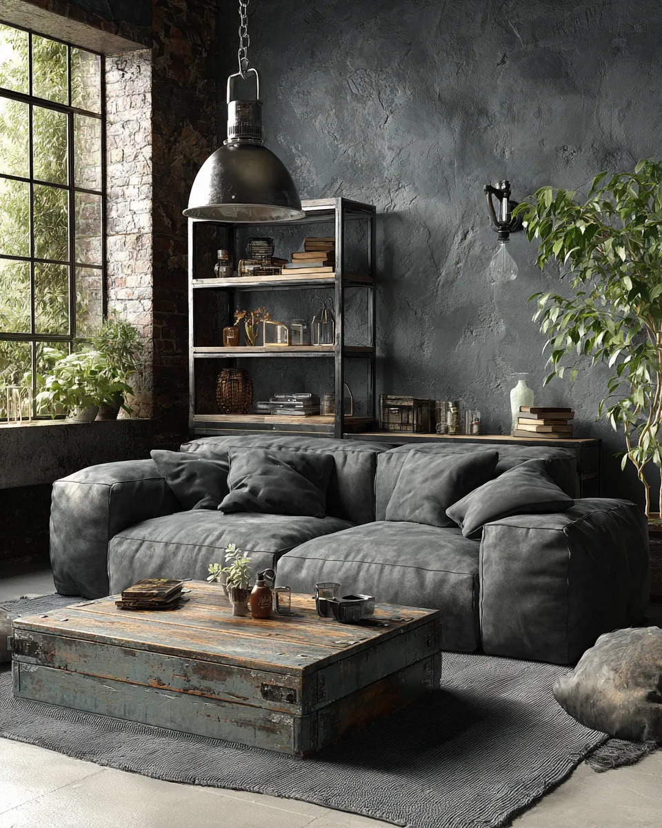 * **Raw Wood Tones:** Balance the industrial feel with warm, natural wood pieces like coffee tables or sideboards.