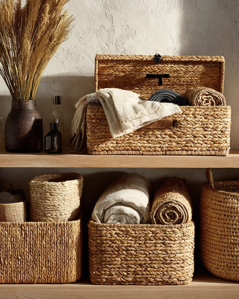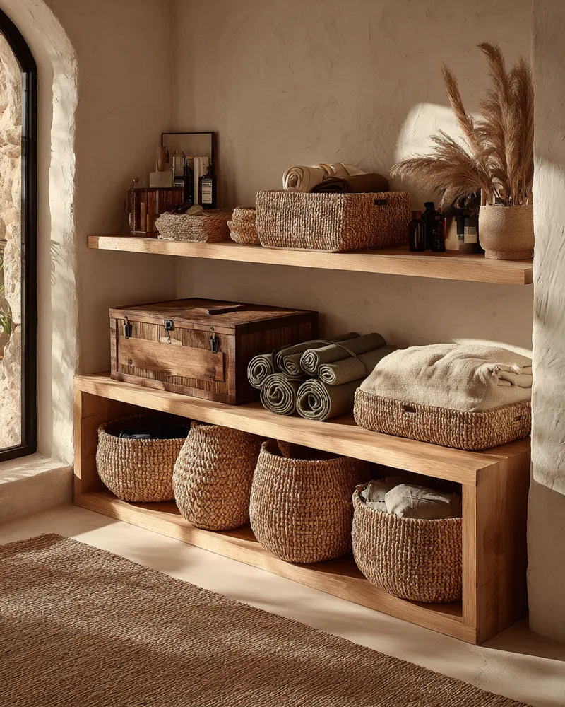 What are your favorite storage solutions? Save this for your stylish storage inspo! 🧺 #ArtisanalStorageIdeas#HandmadeStorageIdeas#TraditionalDecorIdeas#BeautifulStorageIdeas#StorageSolutions#HomeOrganization#InteriorDesign#HomeDecor#Craftsmanship#WovenBaskets