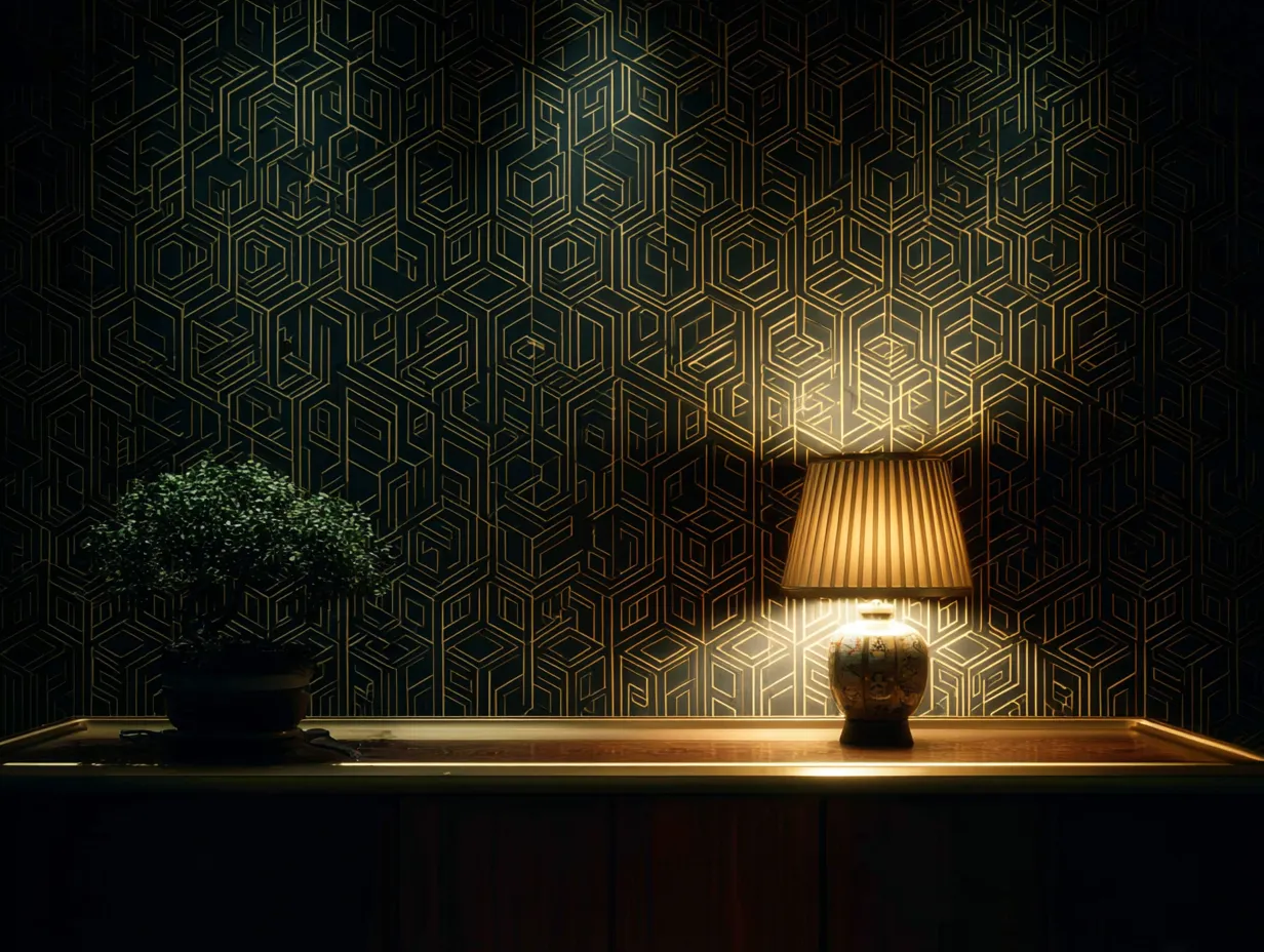 🧱 Geometric Wallpaper: Bold, graphic patterns in classic retro colors like olive green, burnt orange, or turquoise are eye-catching.